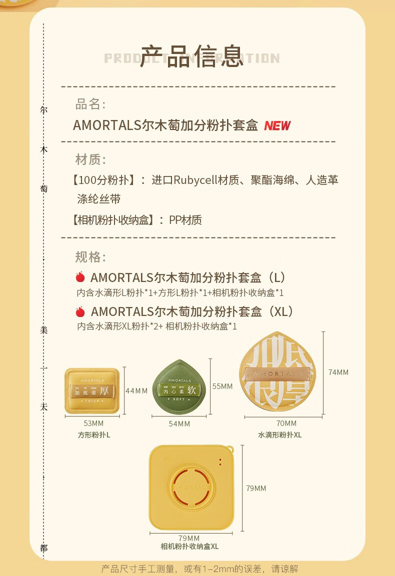 尔木萄粉扑100分美妆粉底专用干湿两用气垫粉扑套盒L码