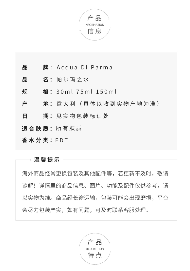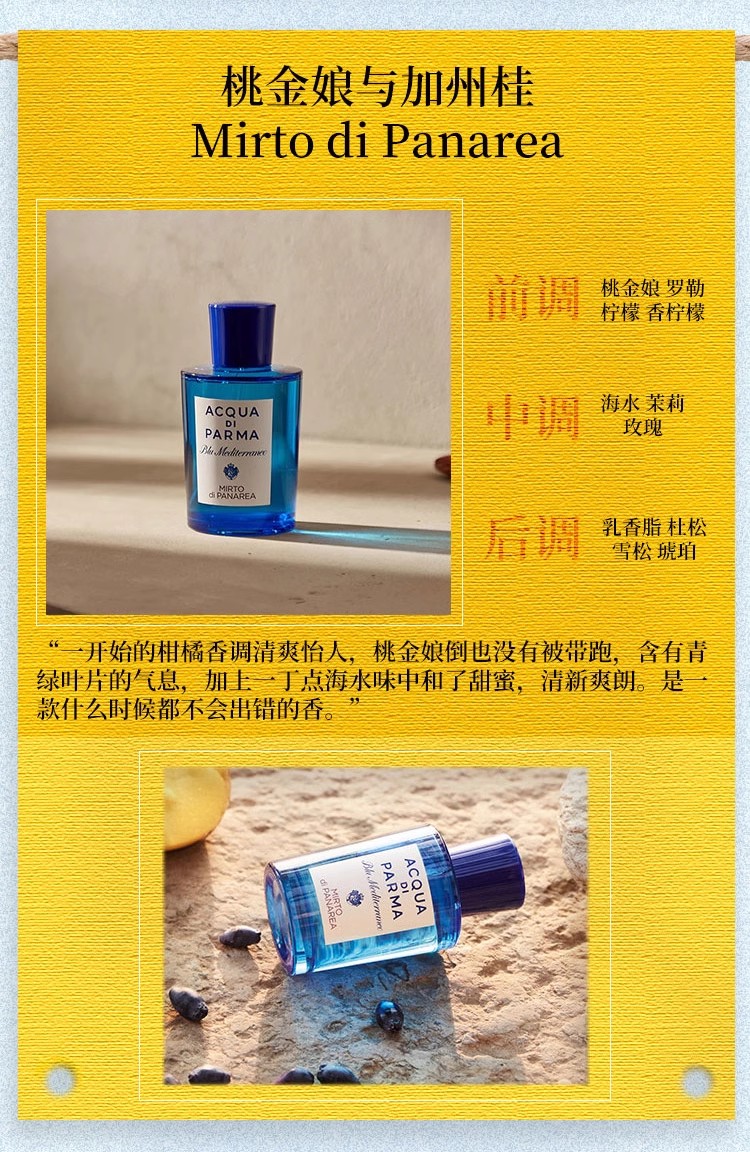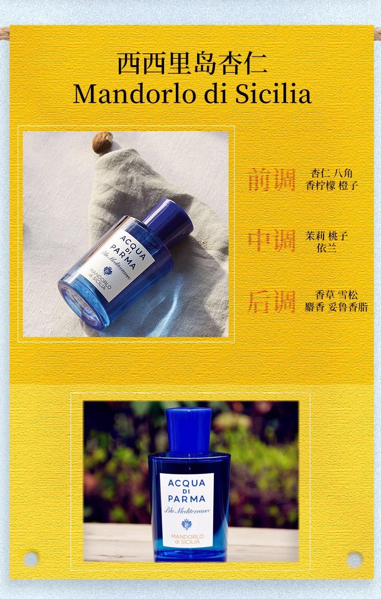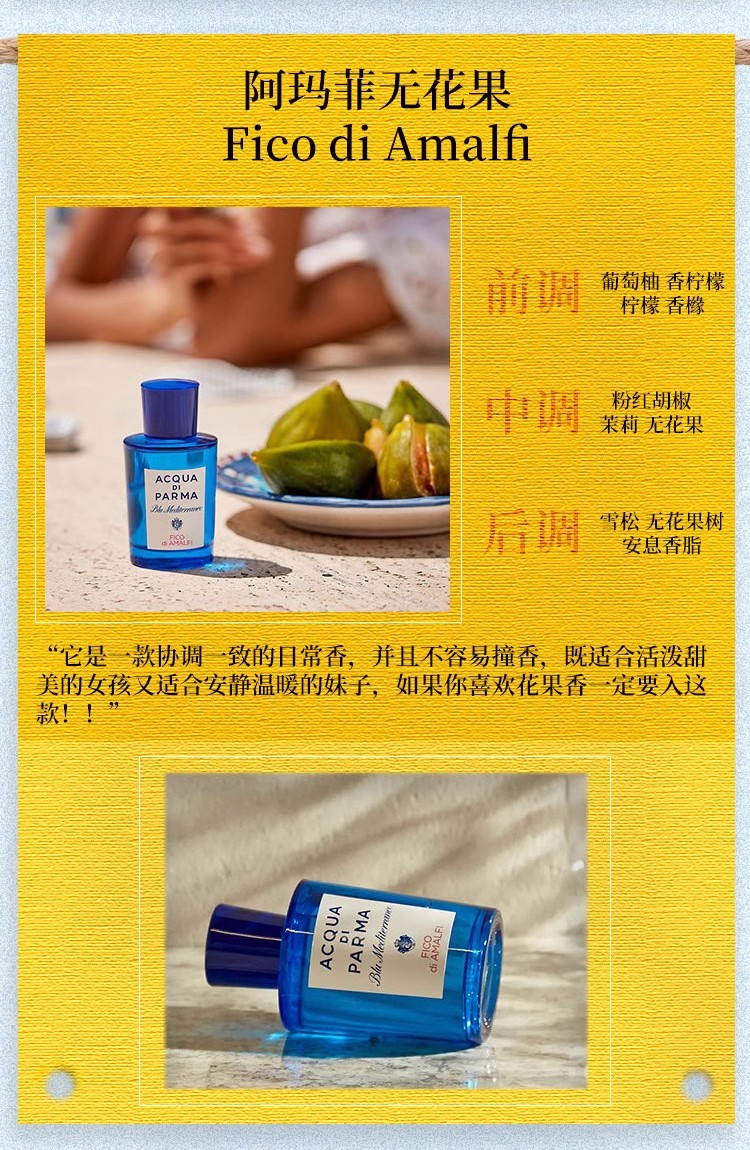 Parma帕尔马之水帕尔玛桃金娘加州桂/西西里岛杏仁/阿玛菲无花果 蓝色地中海男女士中性淡香水30ml/75ml/150ml【CDF】