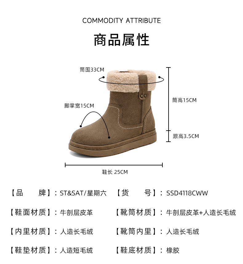 星期六复古工装风保暖雪地靴SSD4118CWW