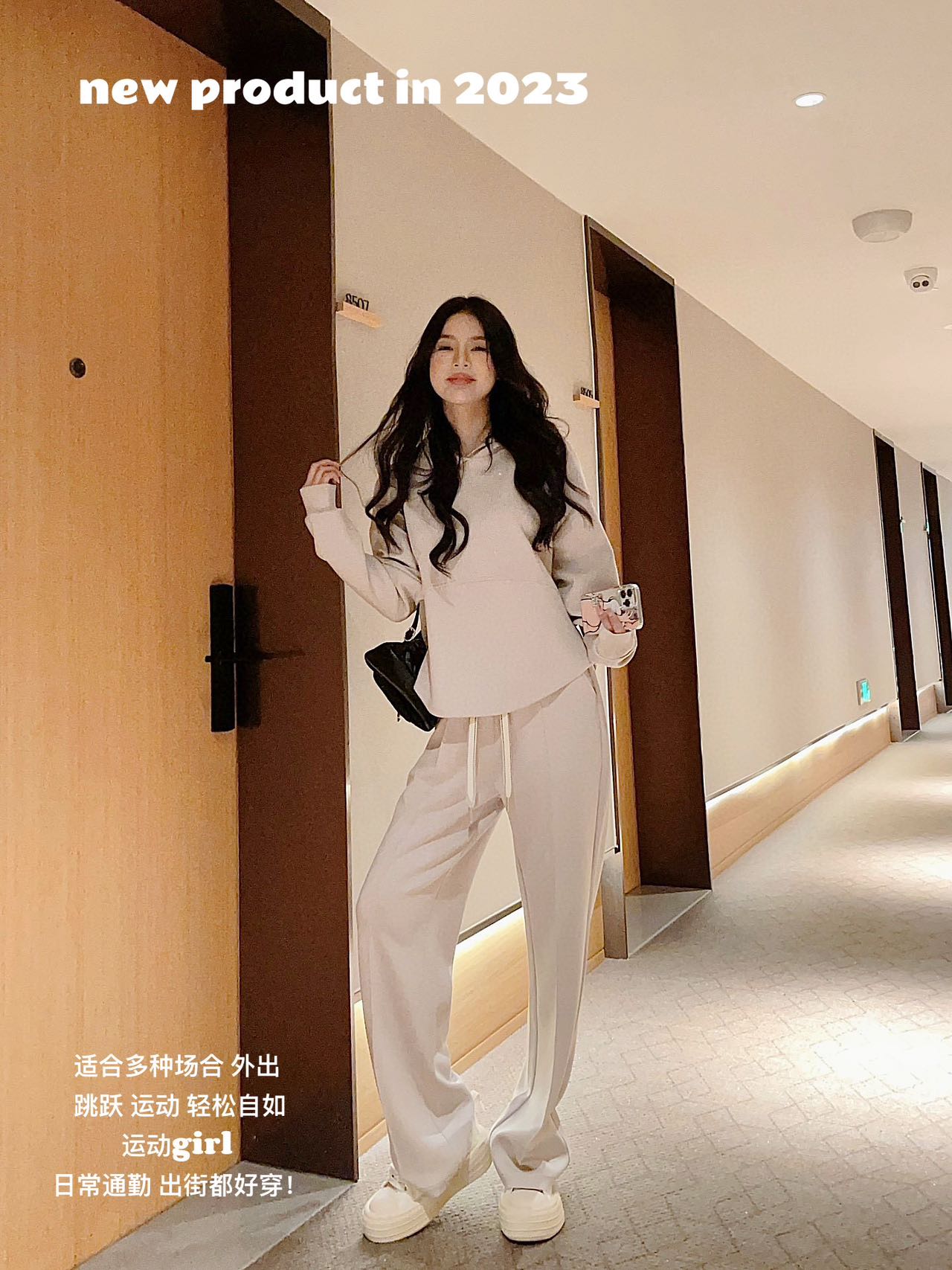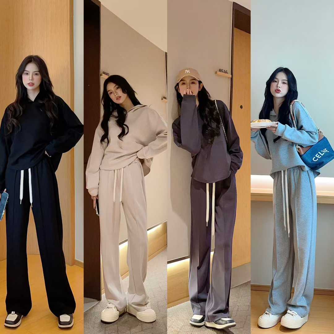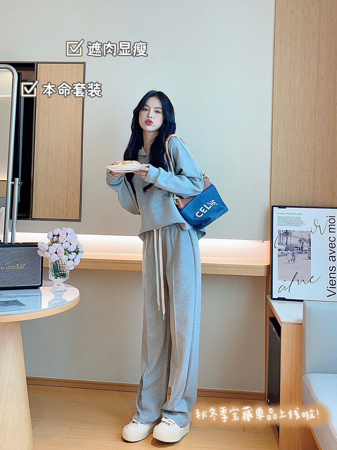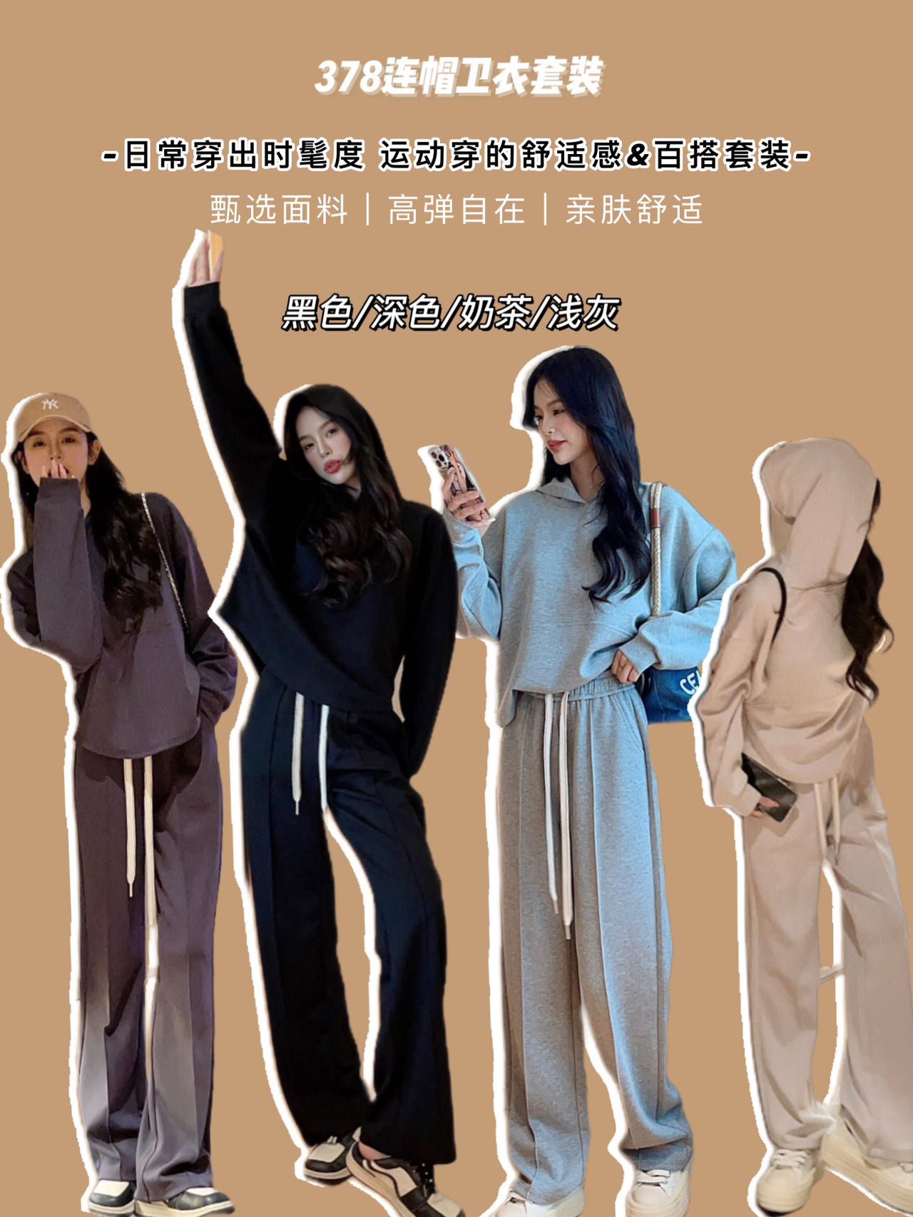 【YW】无忧购休闲运动服套装女秋冬显高卫衣阔腿裤时尚两件套378(截单后3-5天发货)