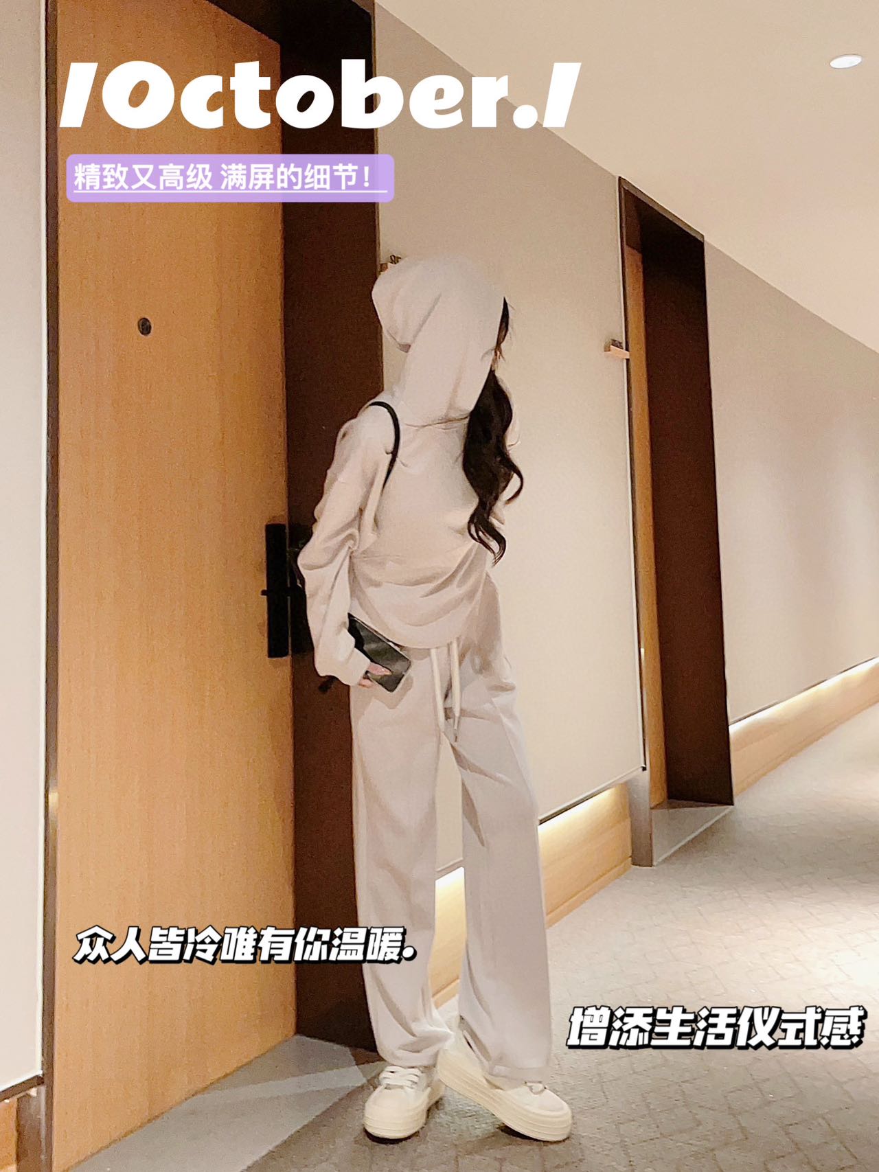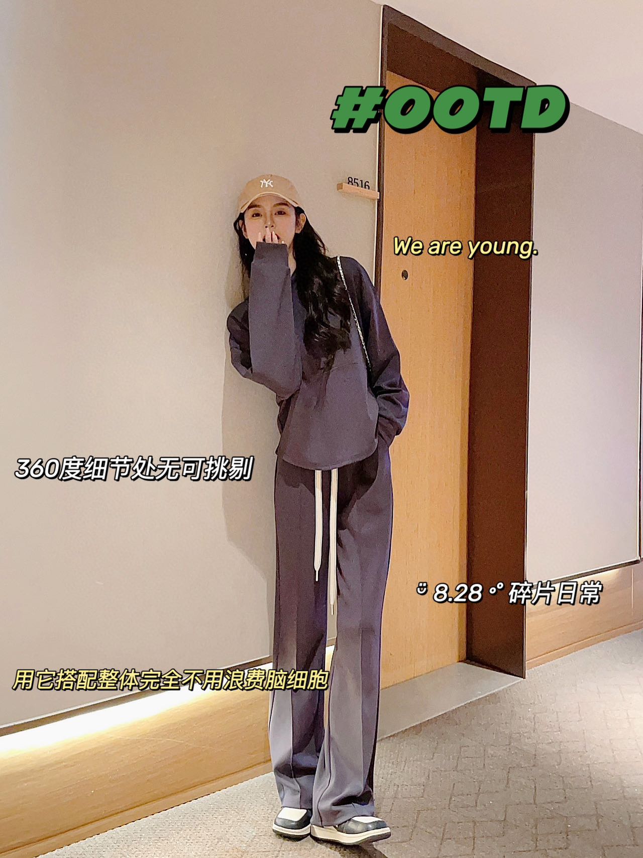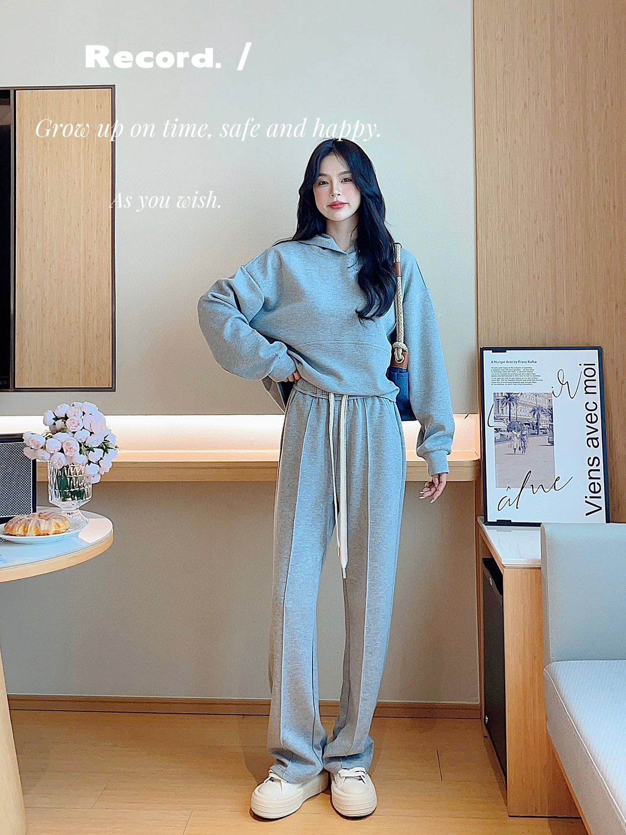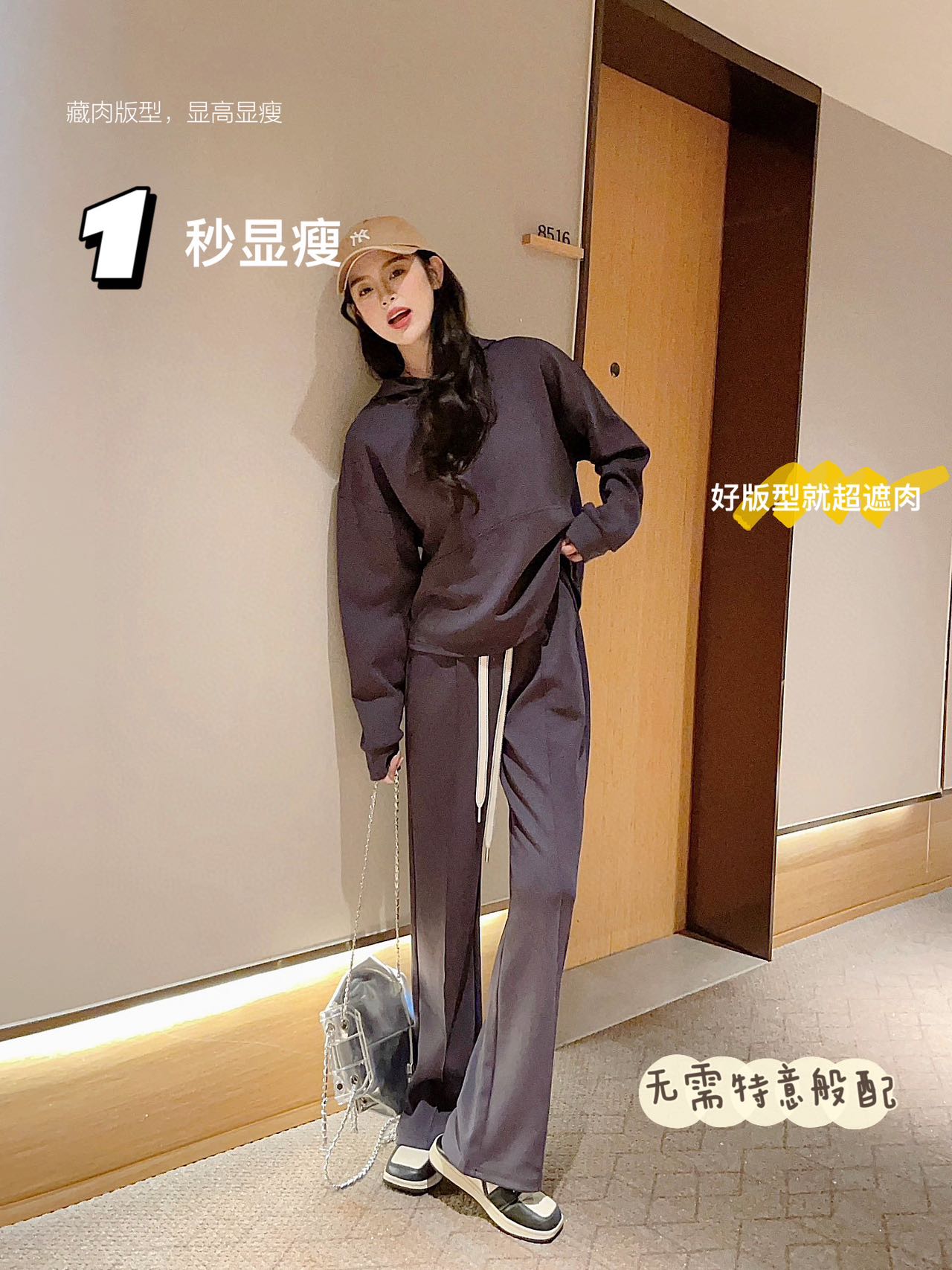 【YW】无忧购休闲运动服套装女秋冬显高卫衣阔腿裤时尚两件套378(截单后3-5天发货)
