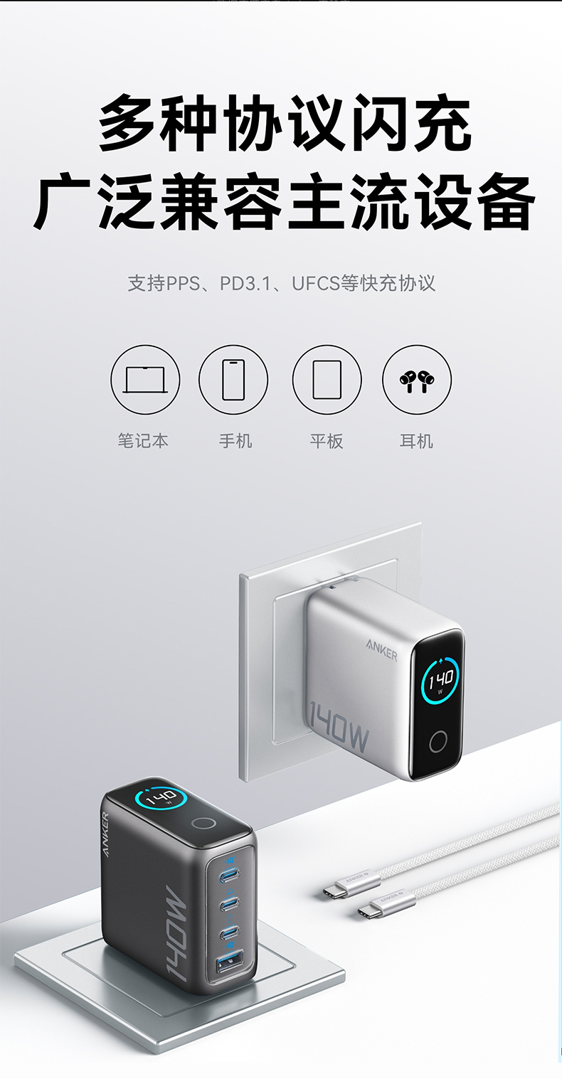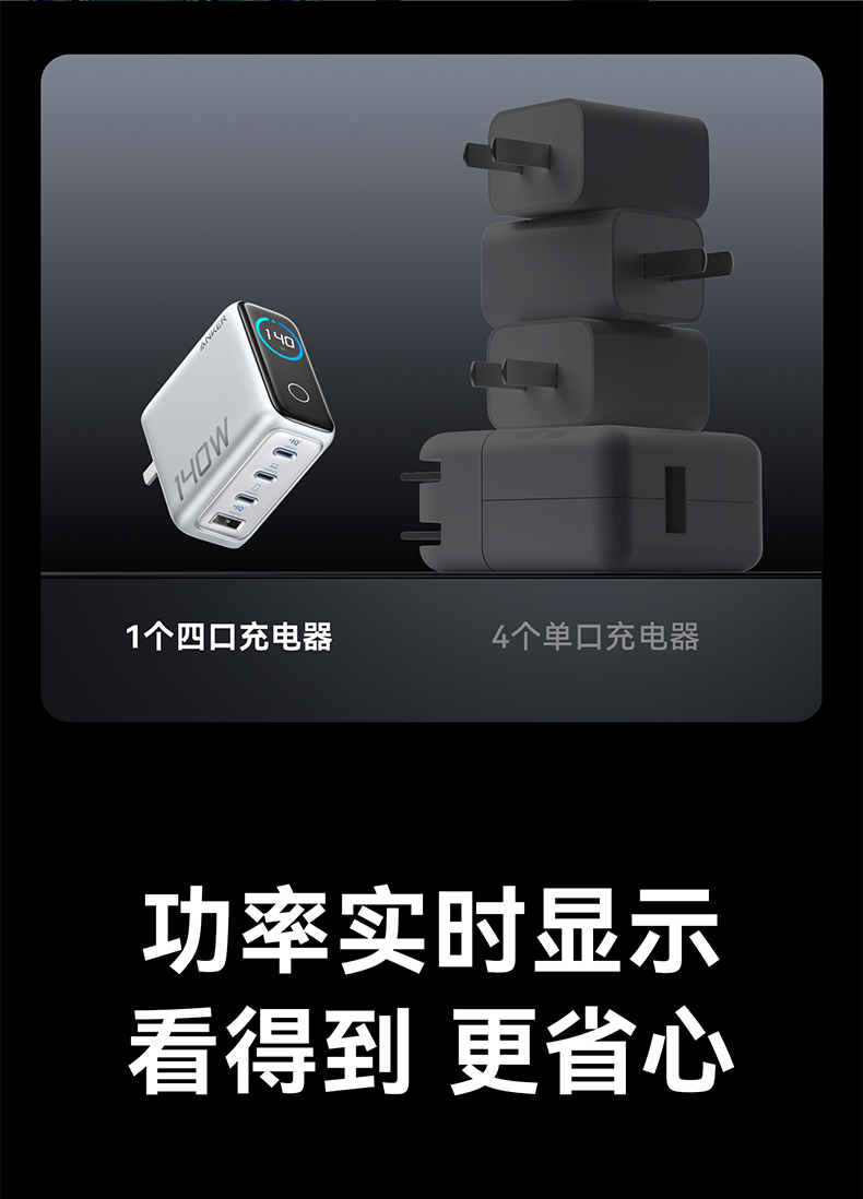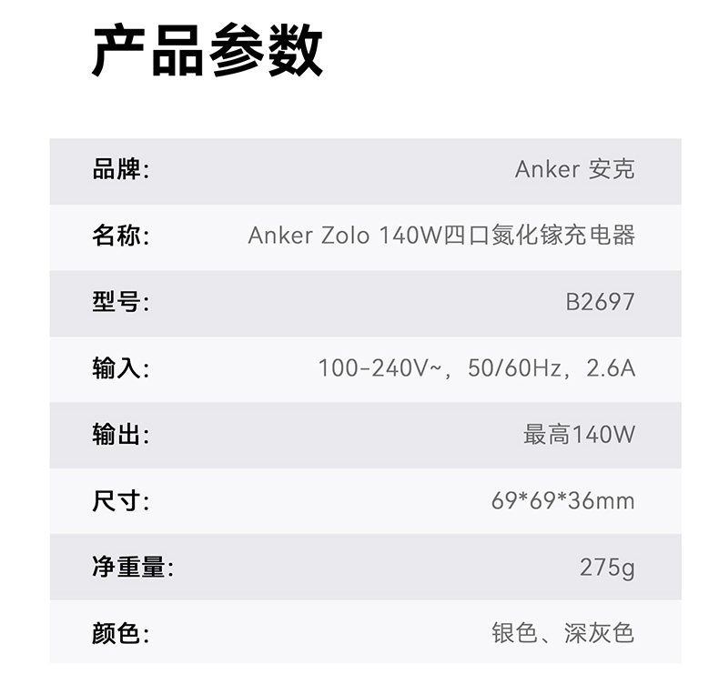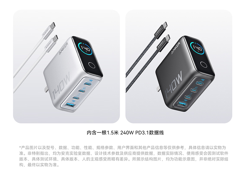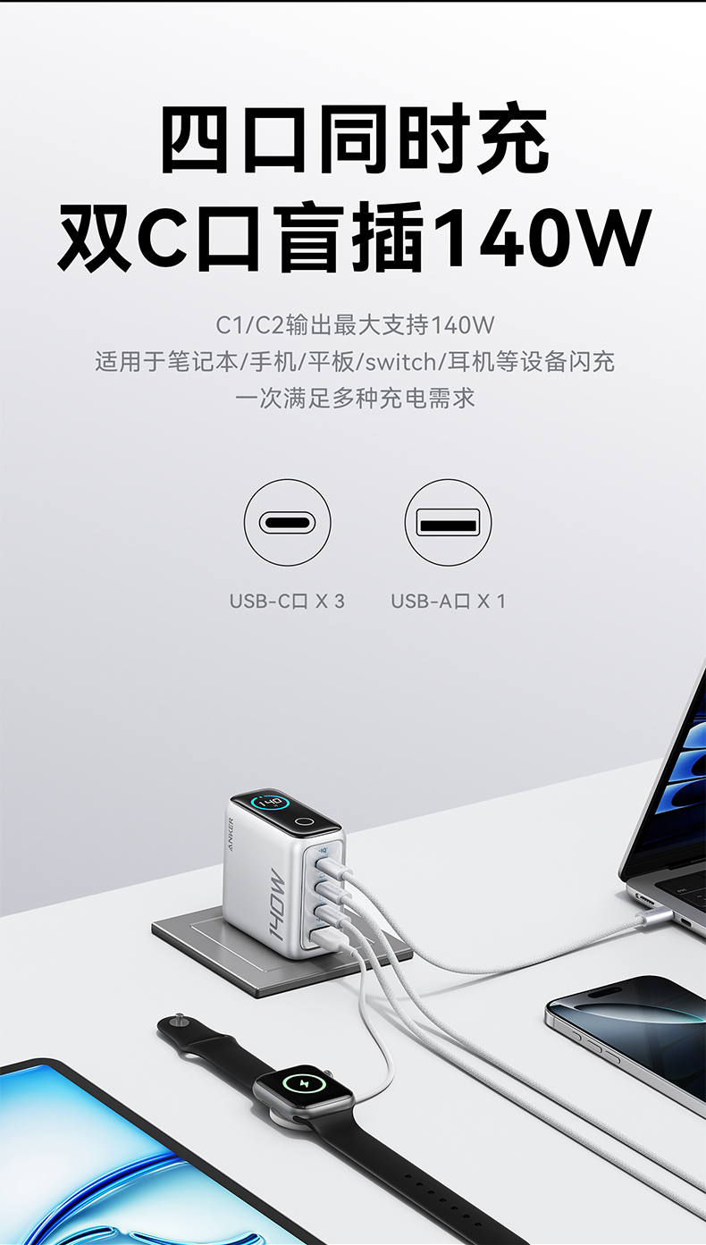 Anker安克 140W氮化镓 充电器 配线套装快充四口 B2697