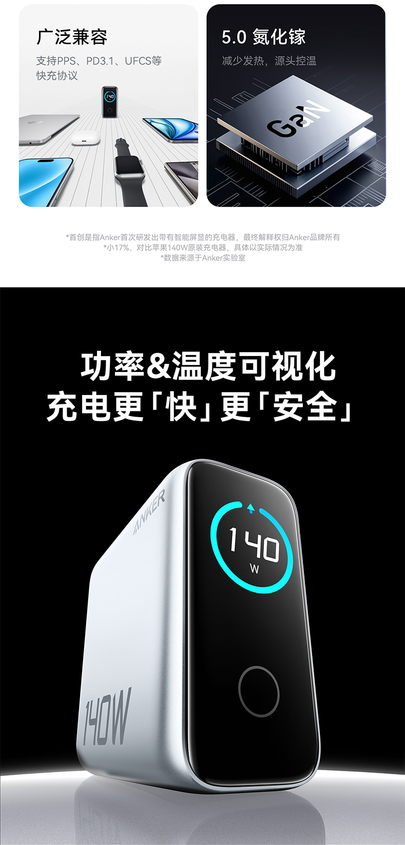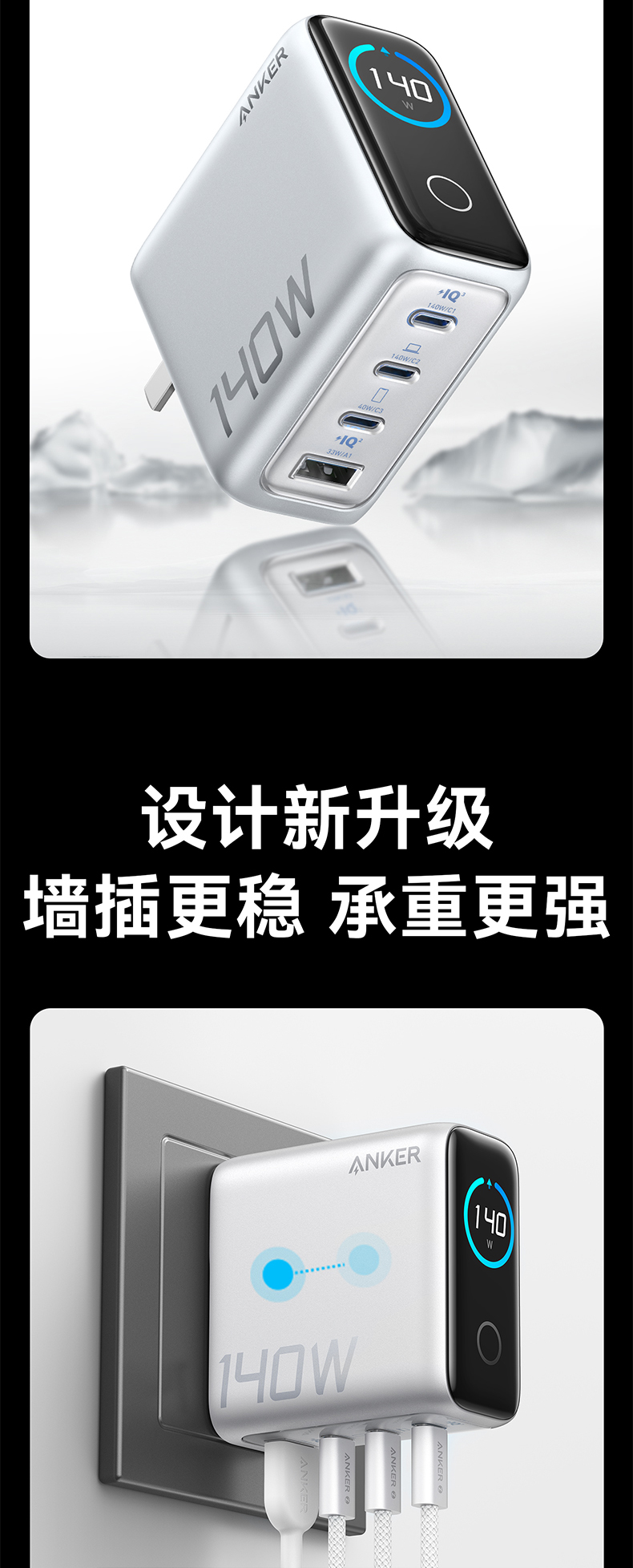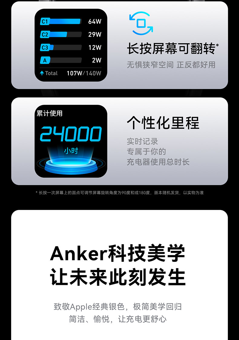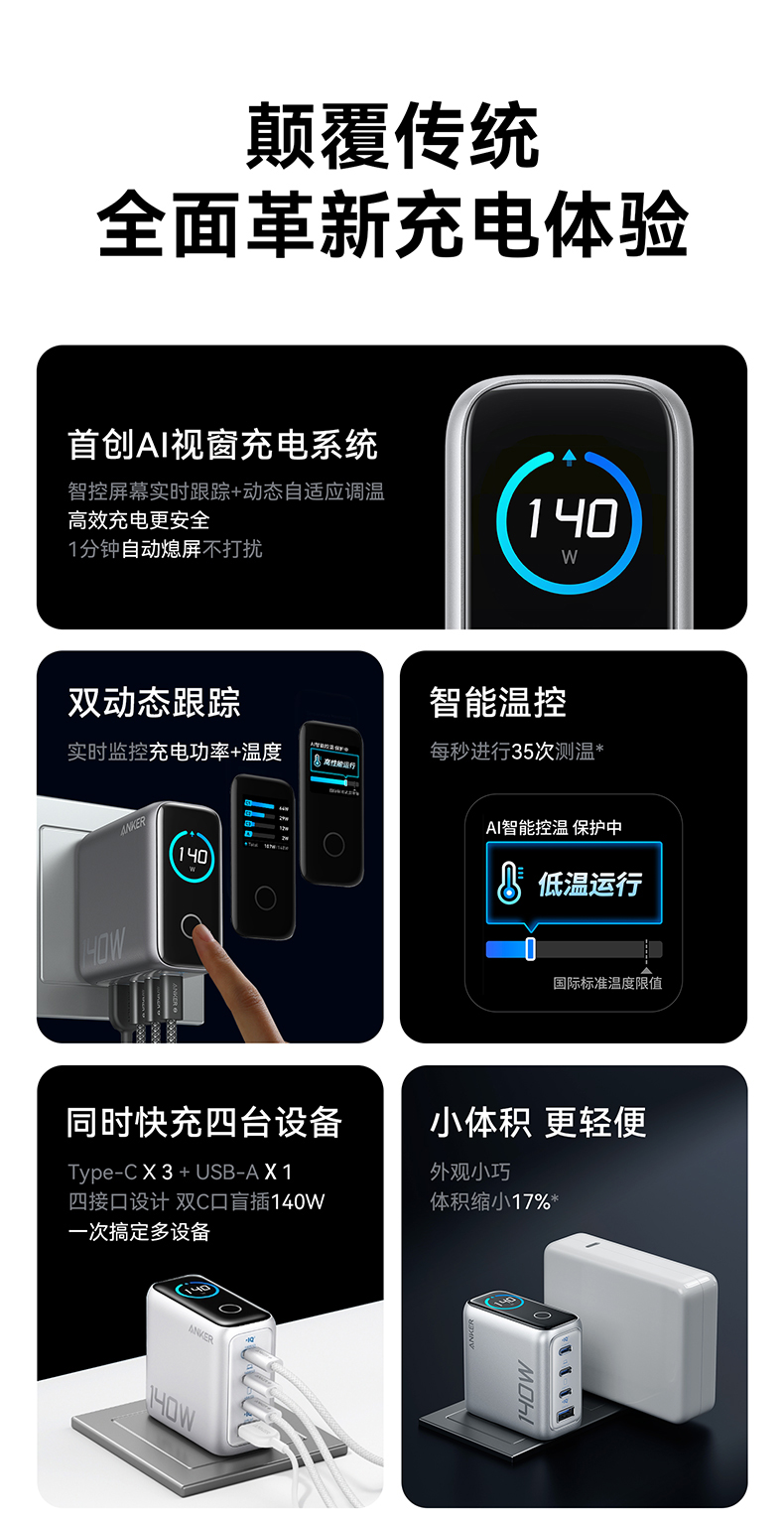 Anker安克 140W氮化镓 充电器 配线套装快充四口 B2697