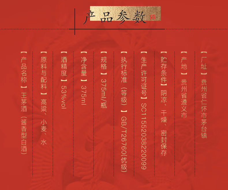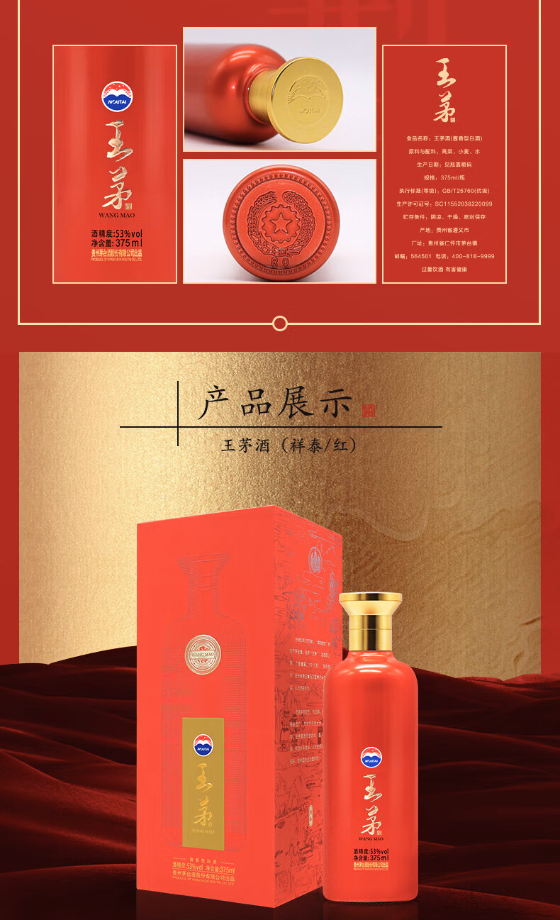 茅台王茅祥泰53度酱香型白酒375ml*1瓶/6瓶
