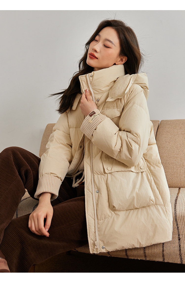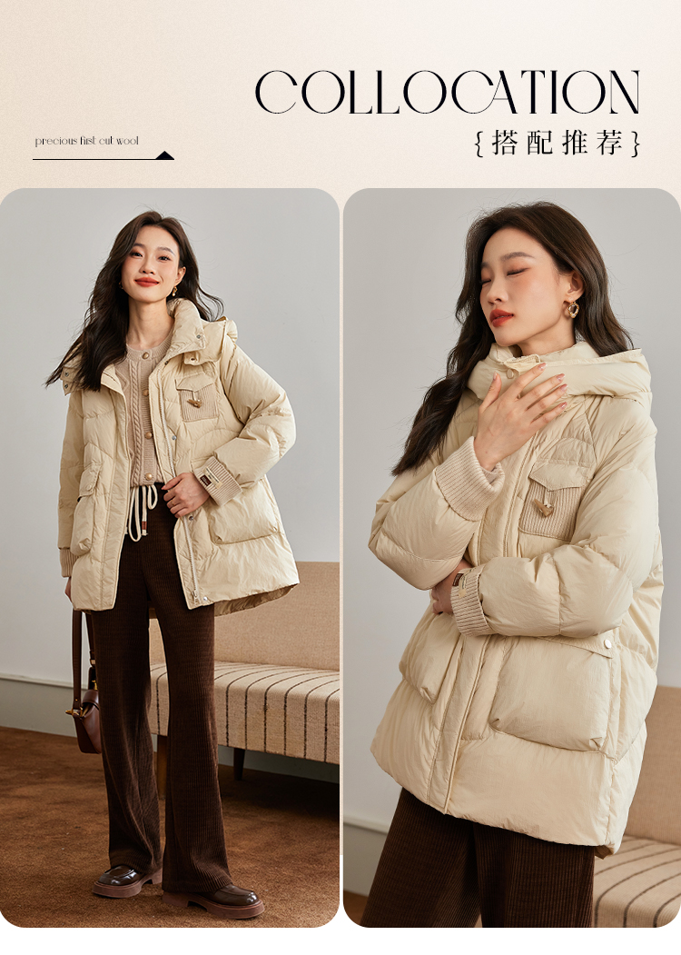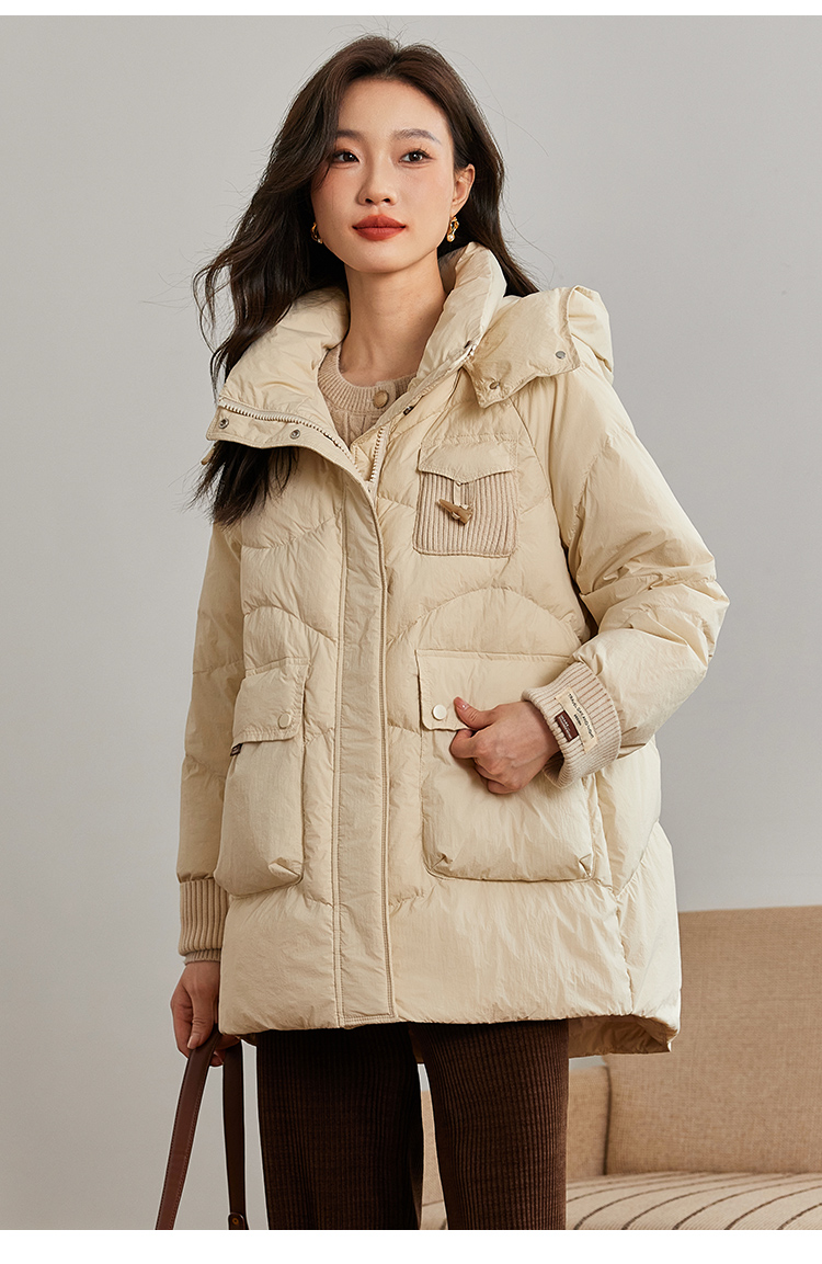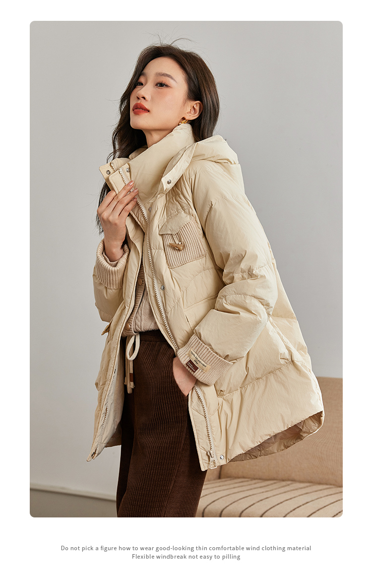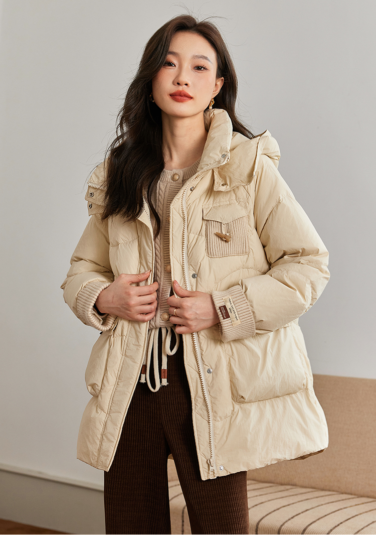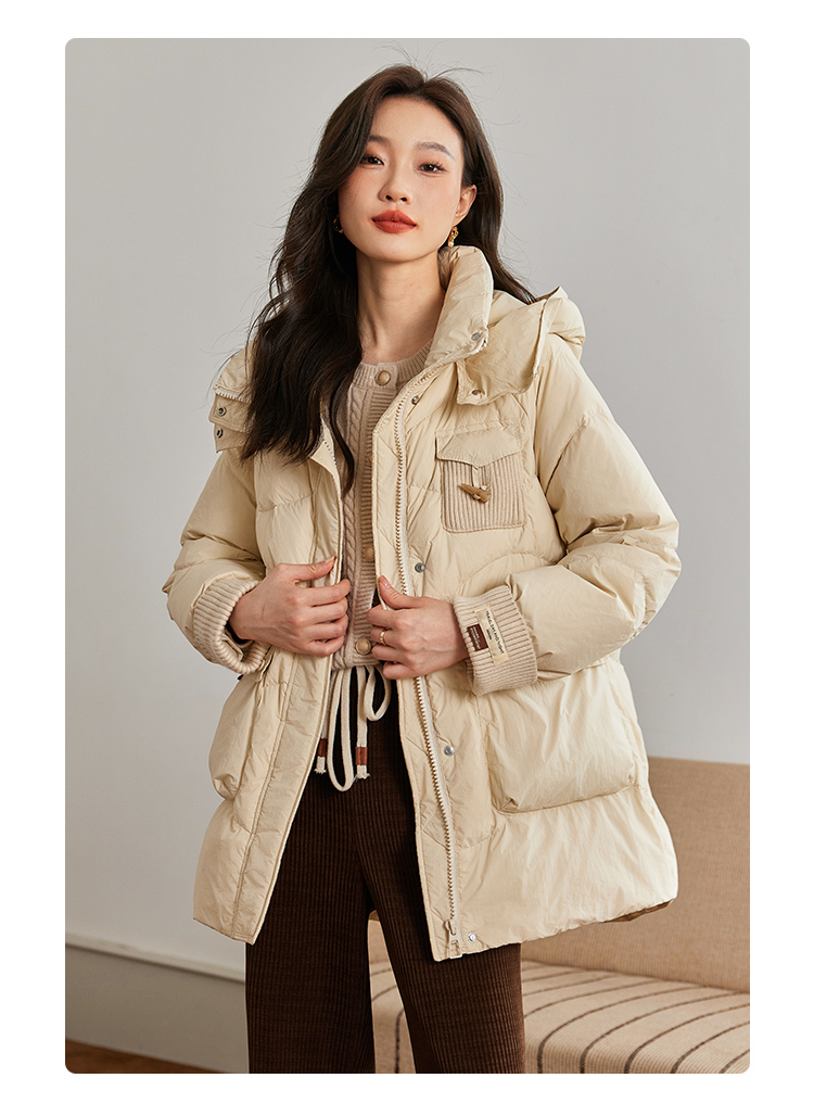 【年终特卖】熙世界白鸭绒羽绒服女冬2025新款小个子中长款加厚保暖连帽外套