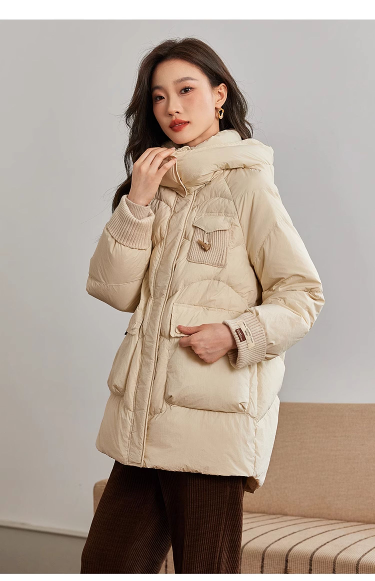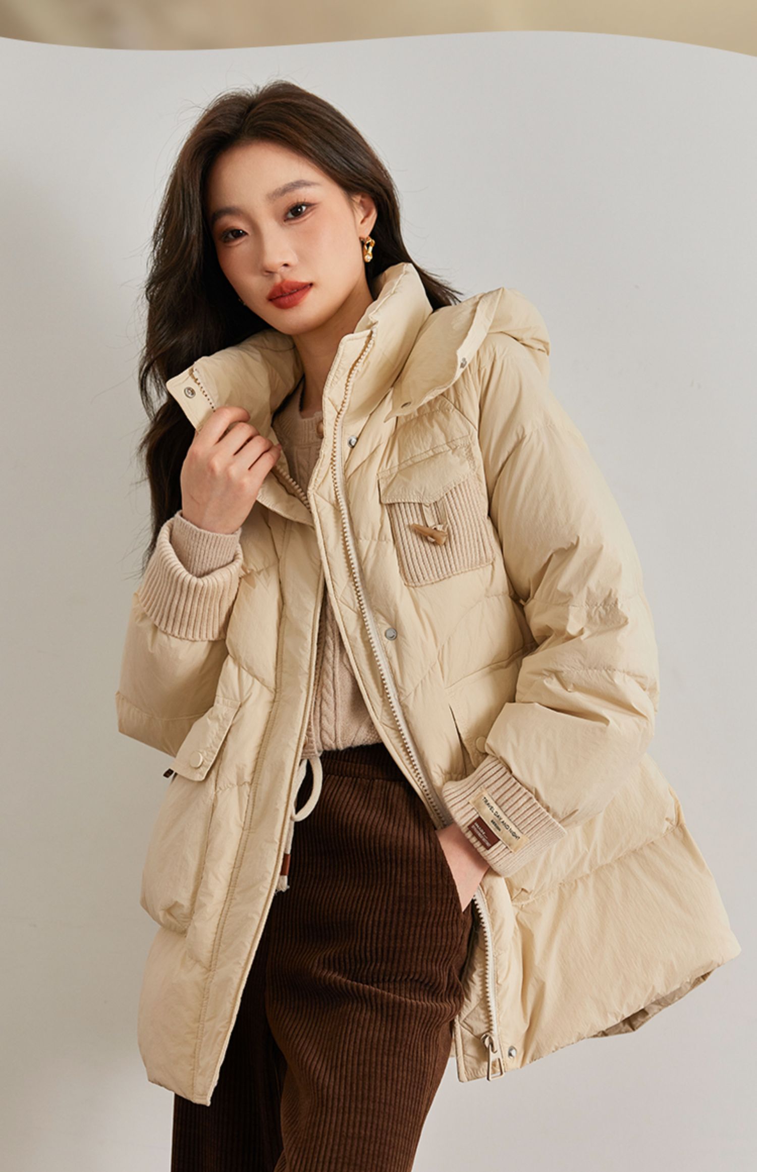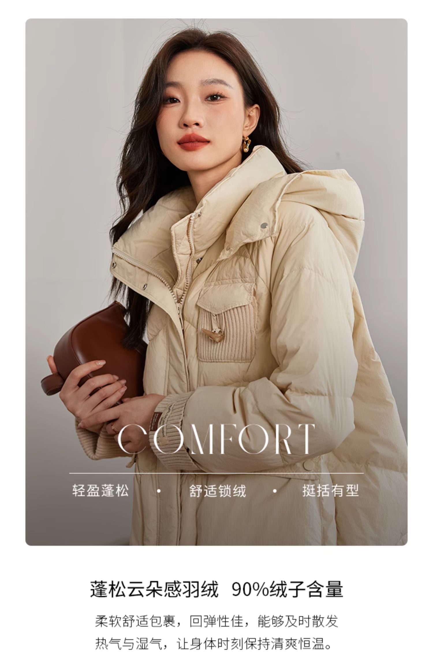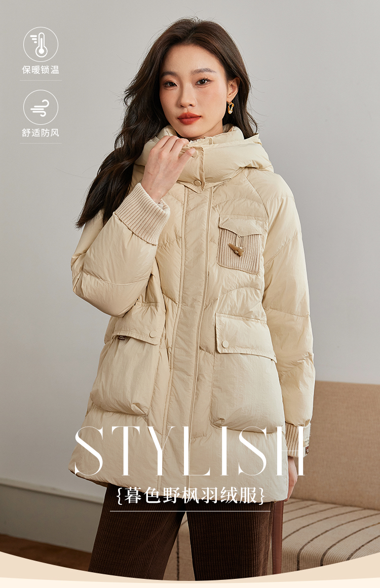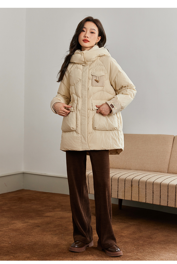 【年终特卖】熙世界白鸭绒羽绒服女冬2025新款小个子中长款加厚保暖连帽外套
