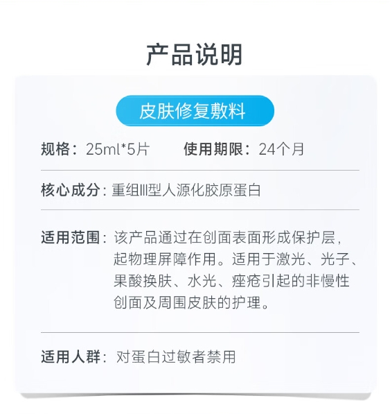 绽妍医用皮肤修复敷料 重组III型人源化胶原蛋白敷贴 5片/盒