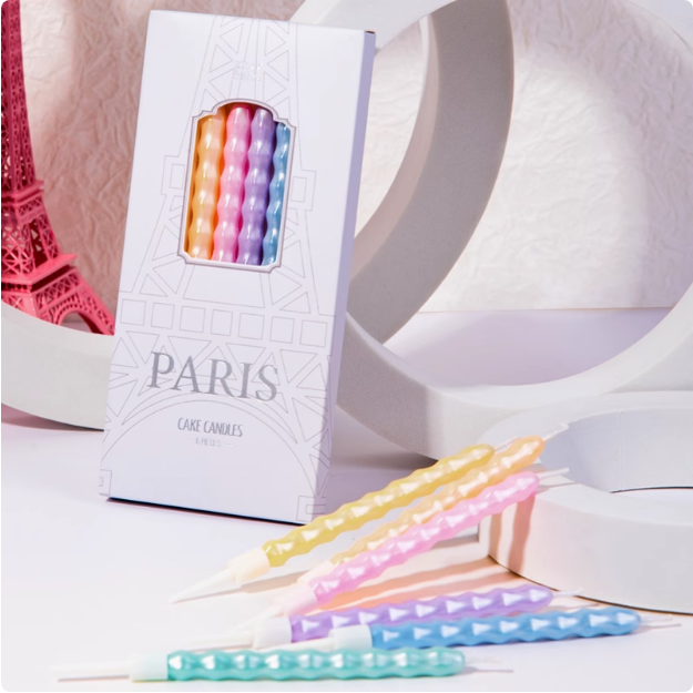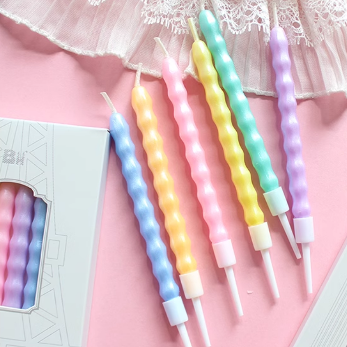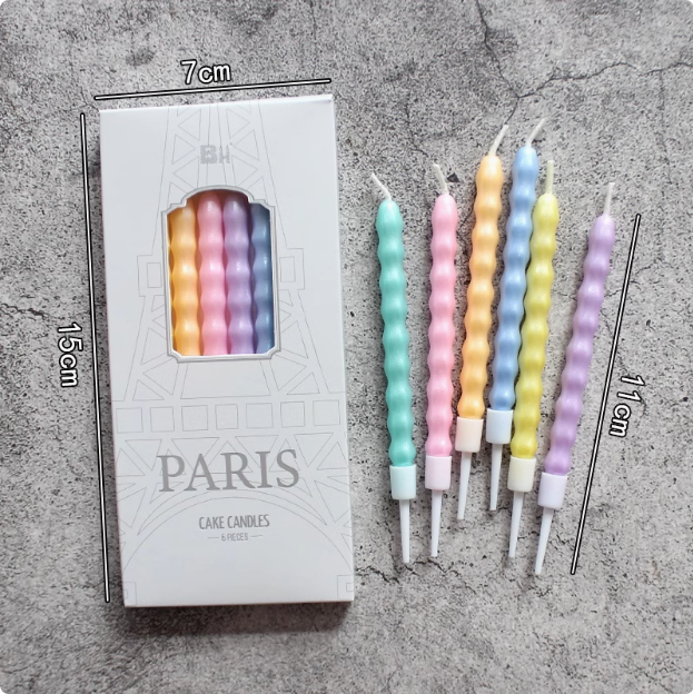 巴黎波浪流光蜡烛 6支装 彩色粗蜡烛 高档生日蛋糕蜡烛