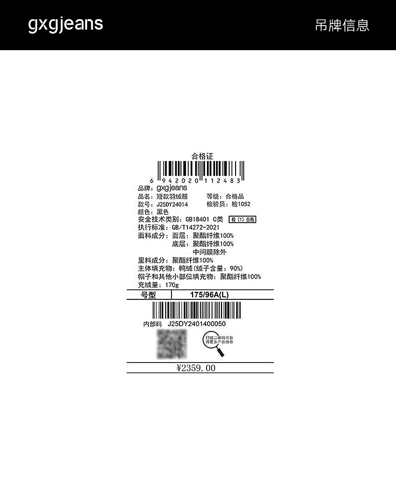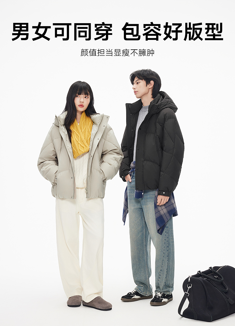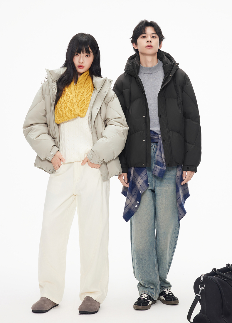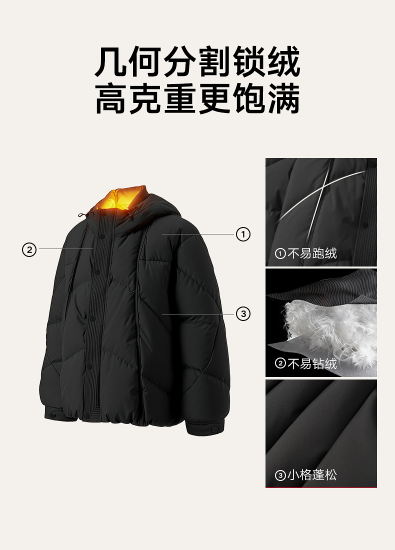 【三防】gxg.jeans男装 多色分割设计面包服保暖连帽羽绒服外套25年冬新品