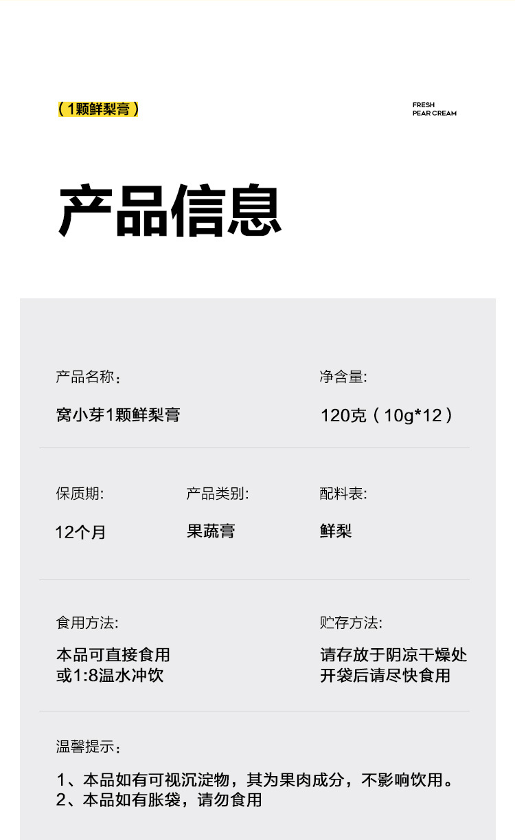窝小芽1颗鲜梨膏冰糖雪梨清润梨汤纯梨膏慈梨膏