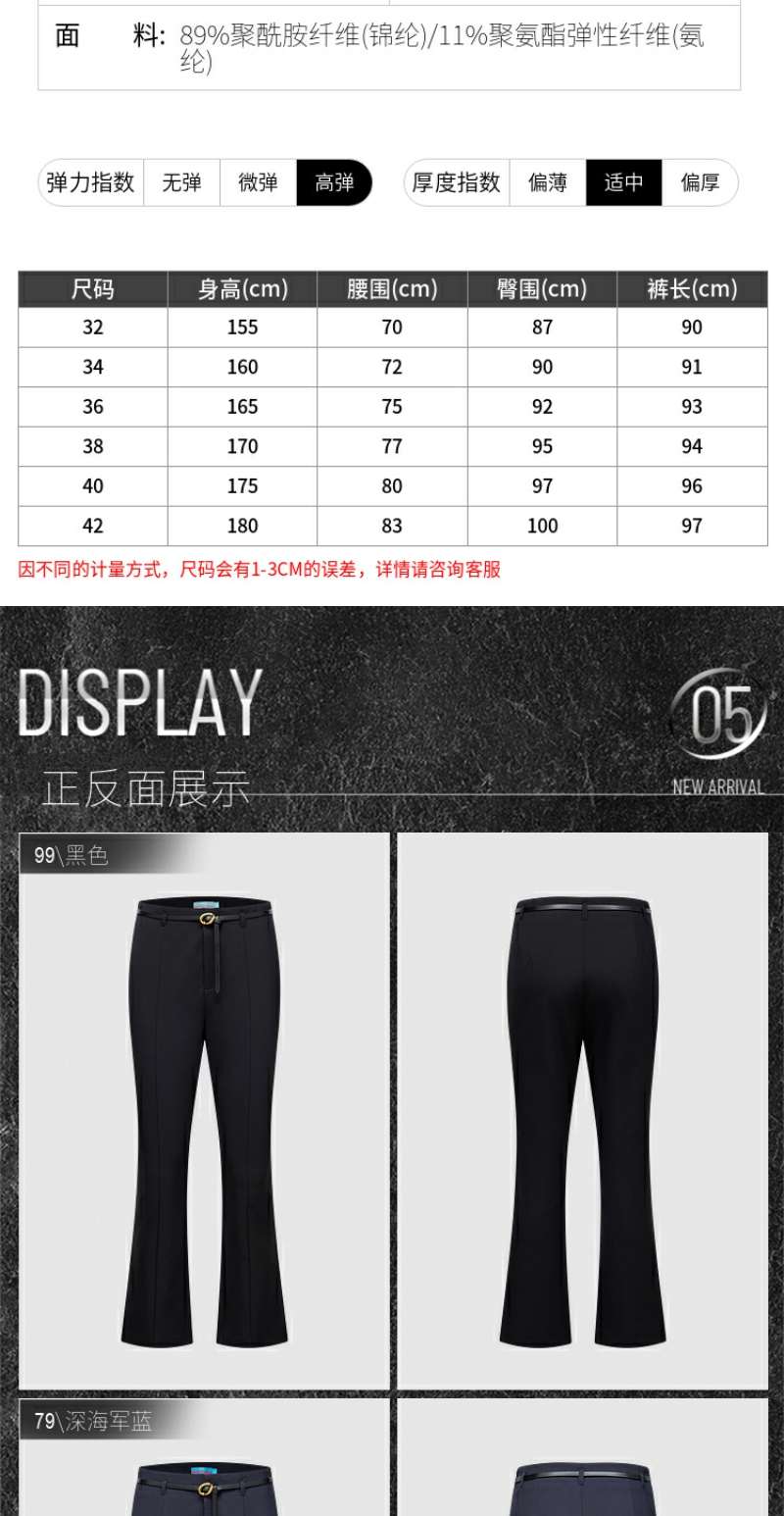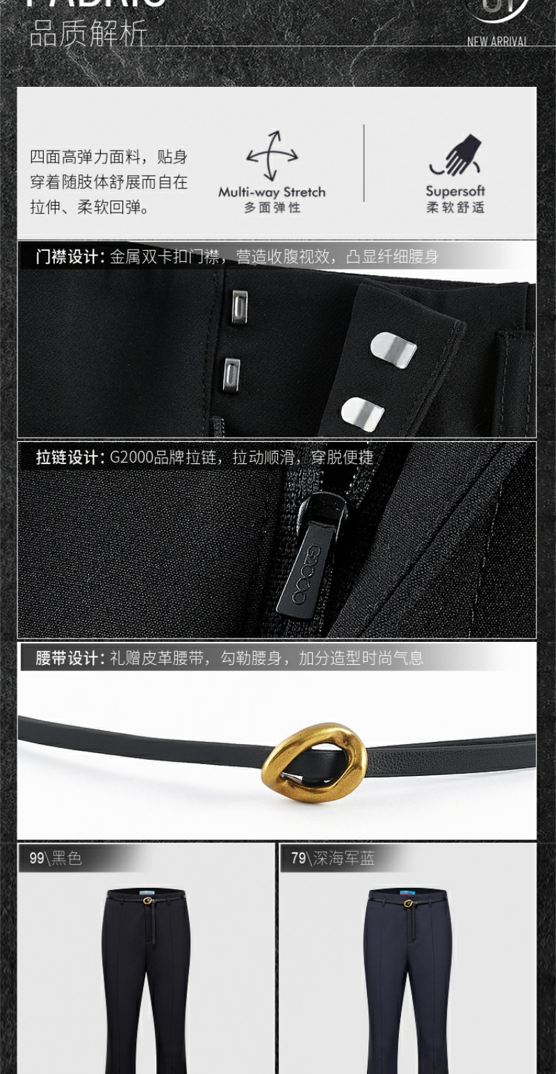 G2000女装SS25商场新款【配送腰带/多面弹/喇叭】通勤修身休闲裤51269114