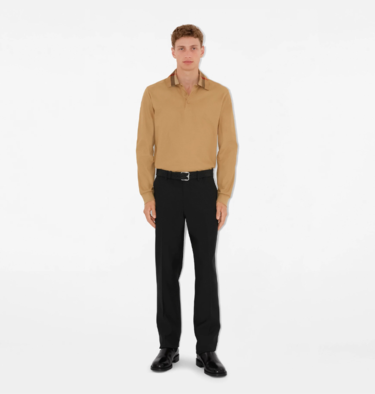 BURBERRY 巴宝莉 男士棉质珠地网眼布面料棉质长袖Polo衫 驼色 8098811 A7026
