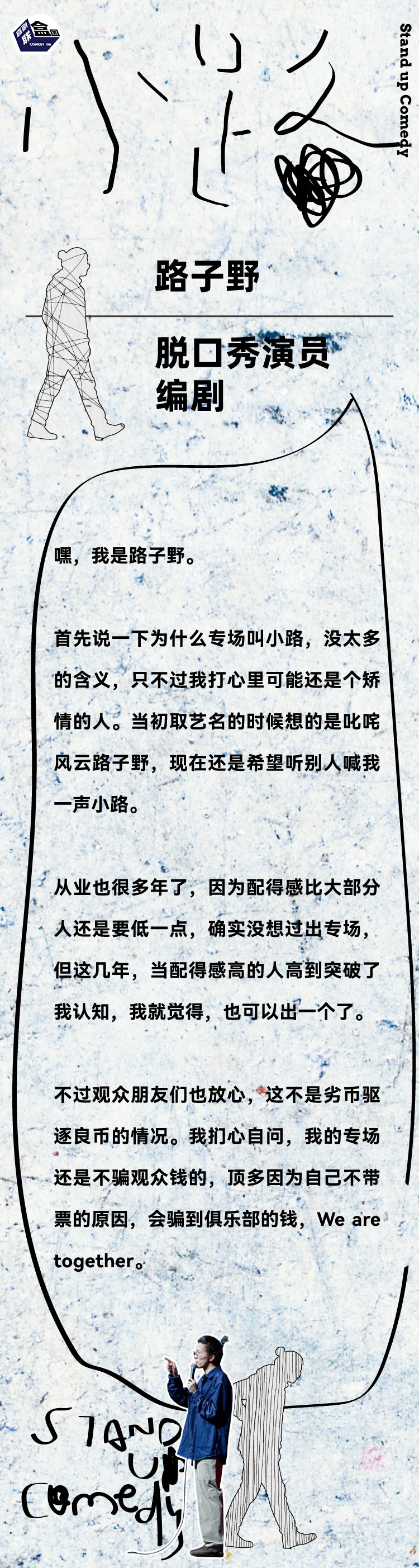 【上海】5月1日 19:30 路子野单口喜剧专场《小路》|喜剧联盒国@新天地 · 喜联空间