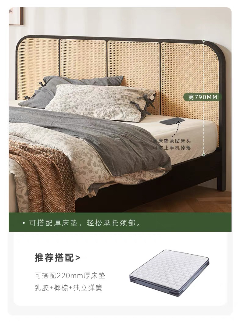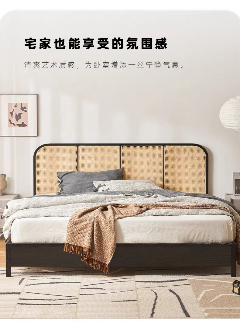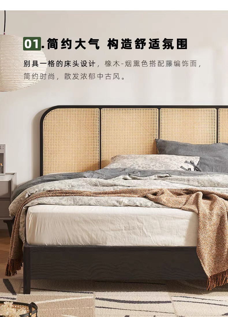 城喧二层卧室橡木烟熏色双人床