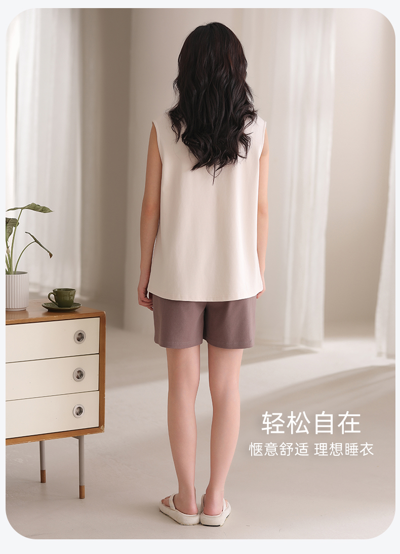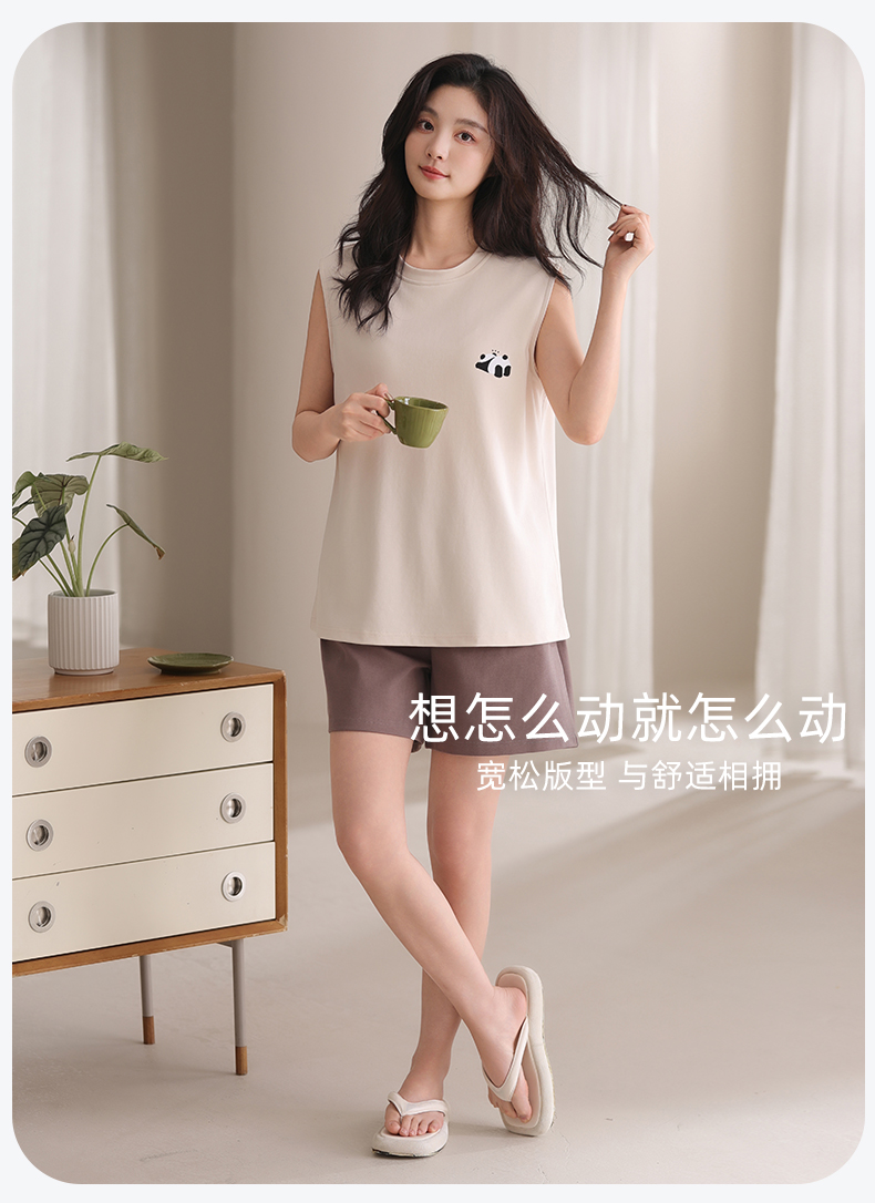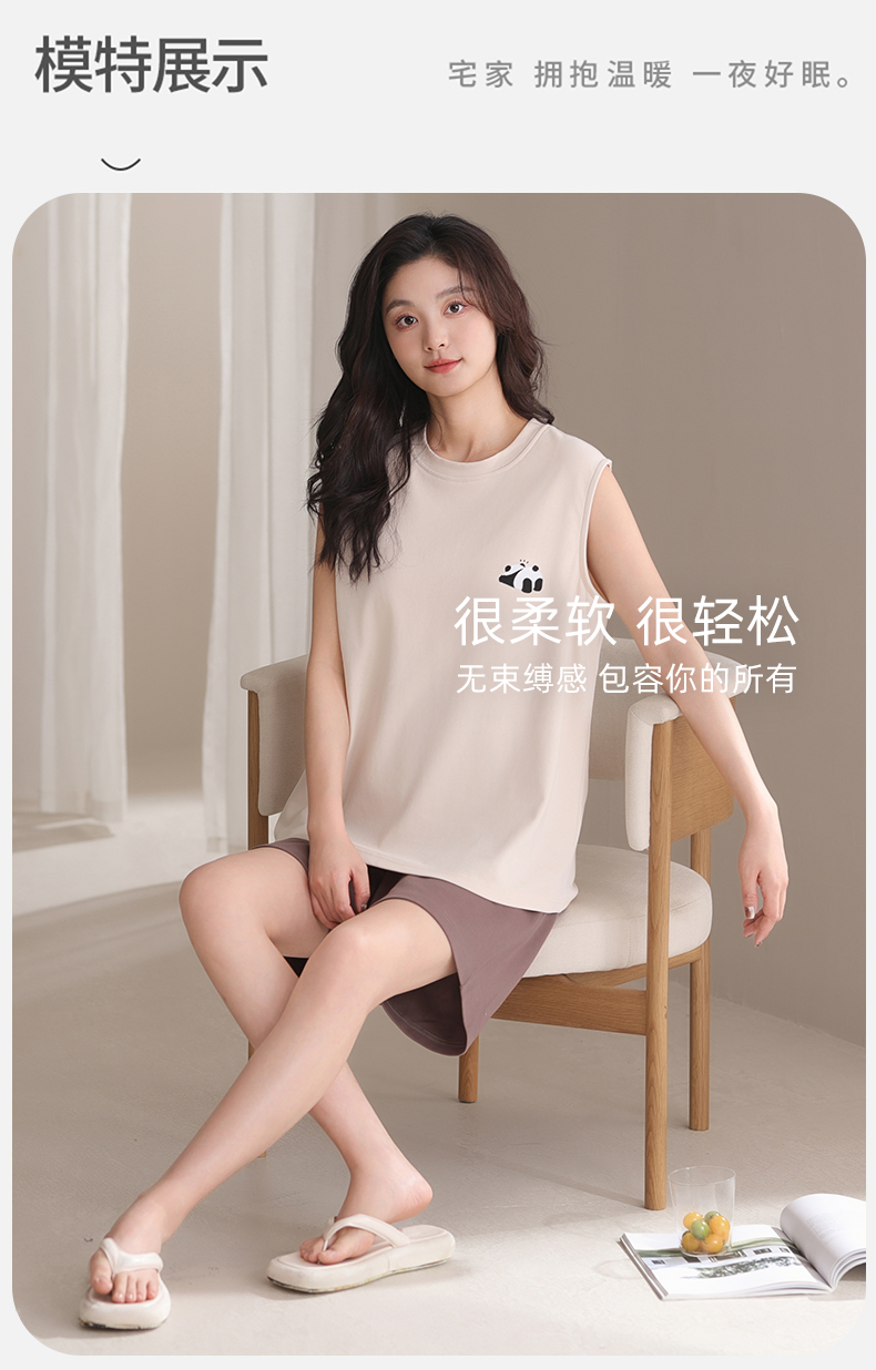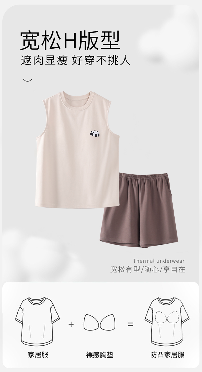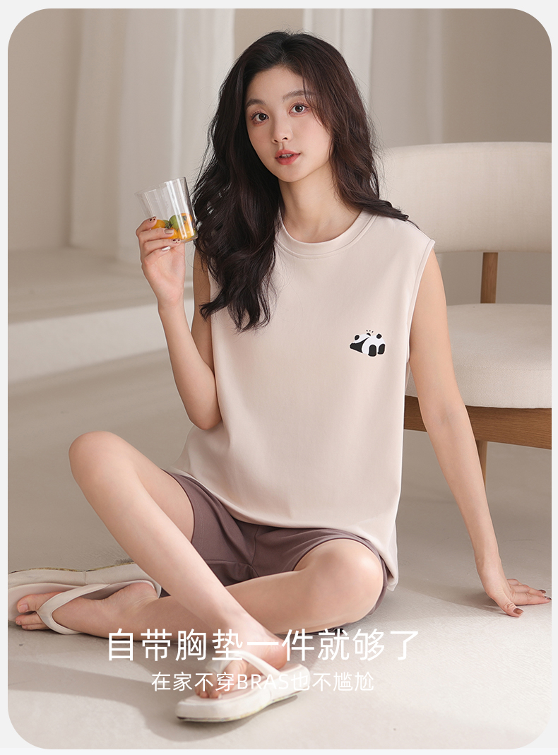洁丽雅新品夏季女士家居服无袖短裤套装自带胸垫可外穿无感睡衣女