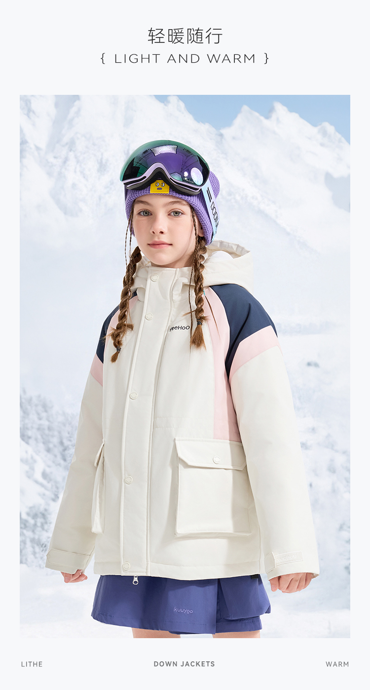 【英氏】【三防羽绒服】【110-175】男女童冲锋衣羽绒服90高密白鸭绒