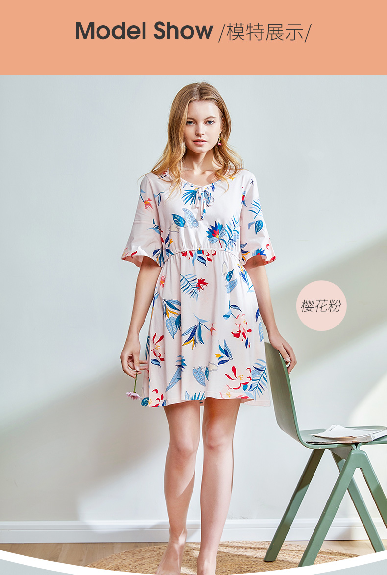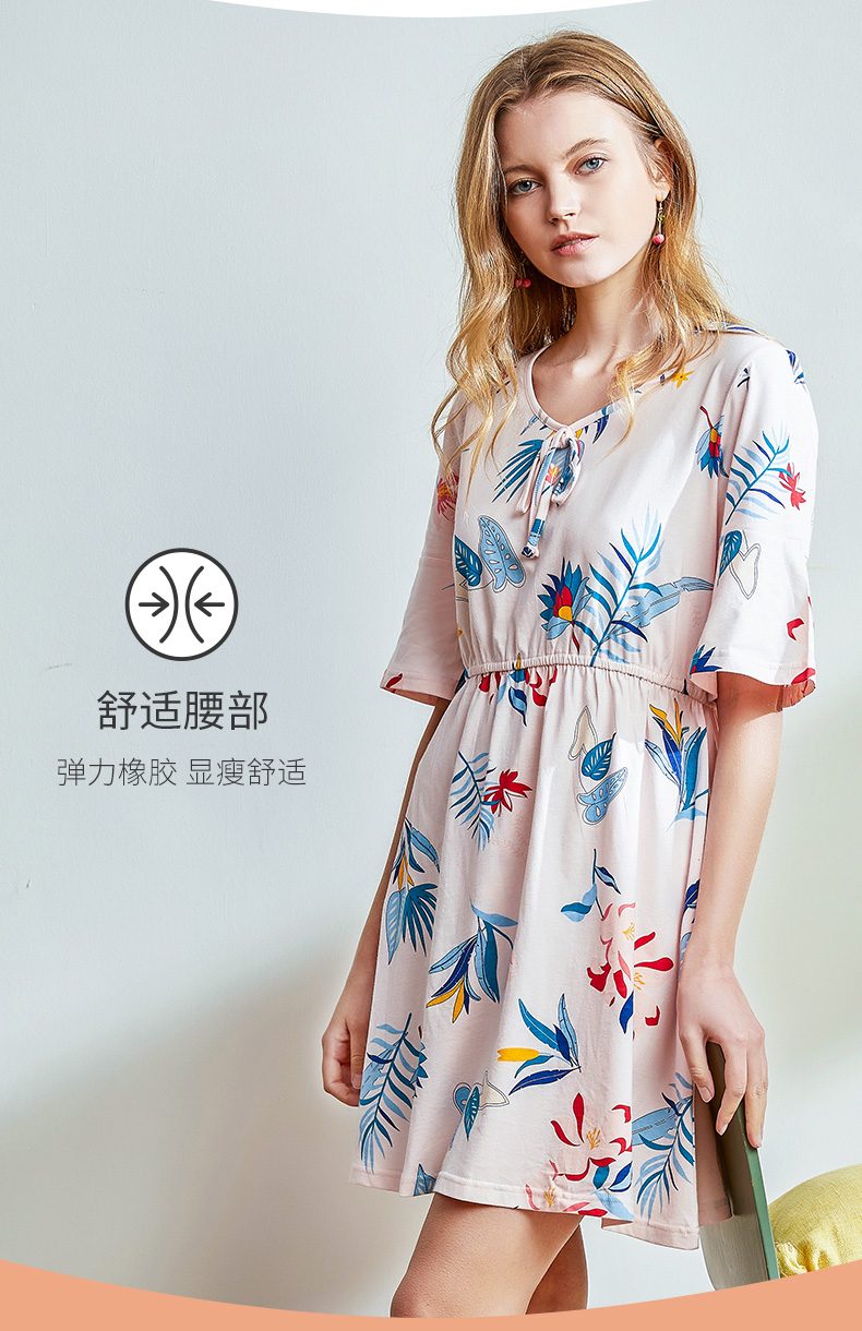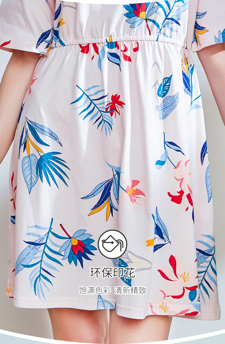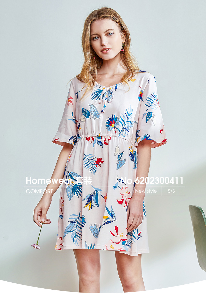 I'd爱帝女士纯棉睡裙植物花卉棉绸手感家居裙