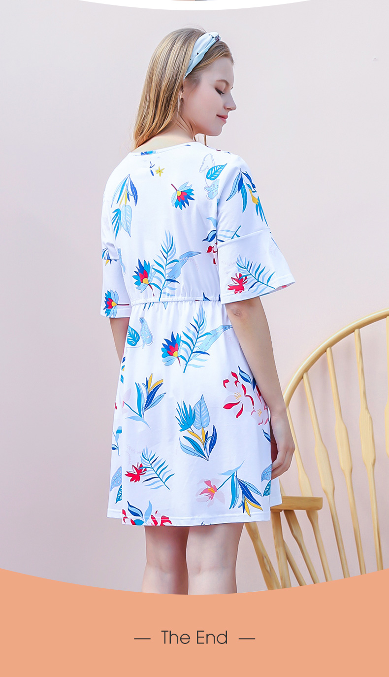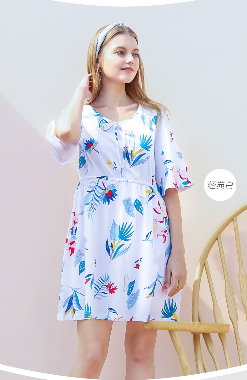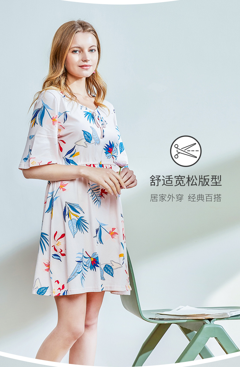 I'd爱帝女士纯棉睡裙植物花卉棉绸手感家居裙