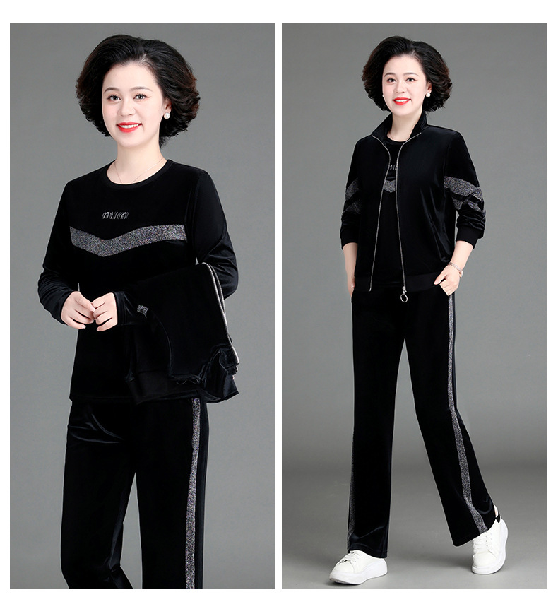 中年人妈妈秋装,外套洋气中老年女装金丝绒休闲运动服三件套装春秋ZB-XH213088