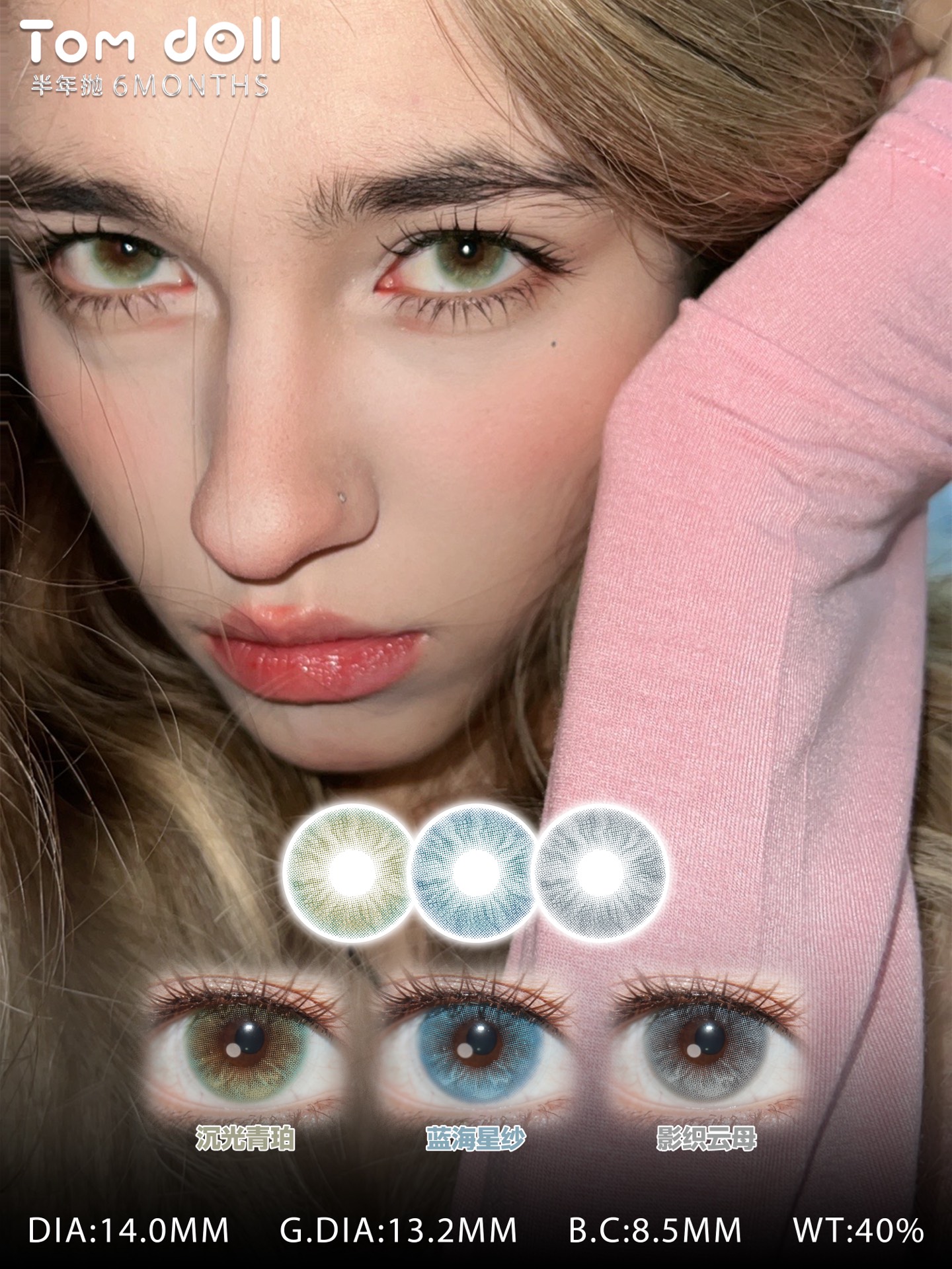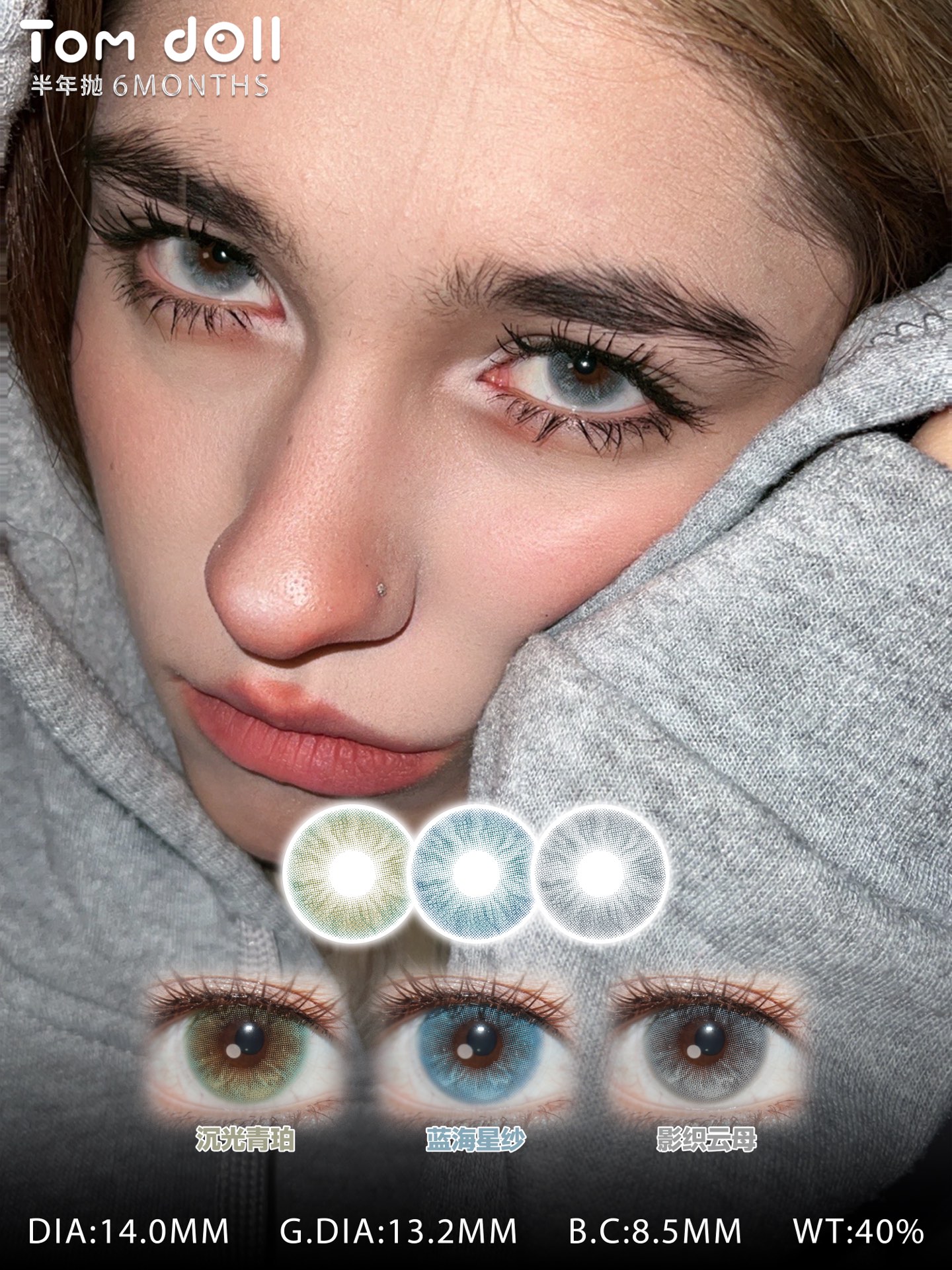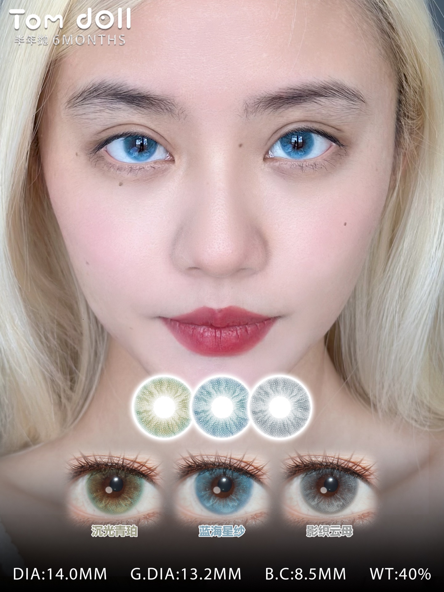tomdoll半年抛 影织云母/沉光青珀/蓝海星纱 14.2mm 灰绿蓝