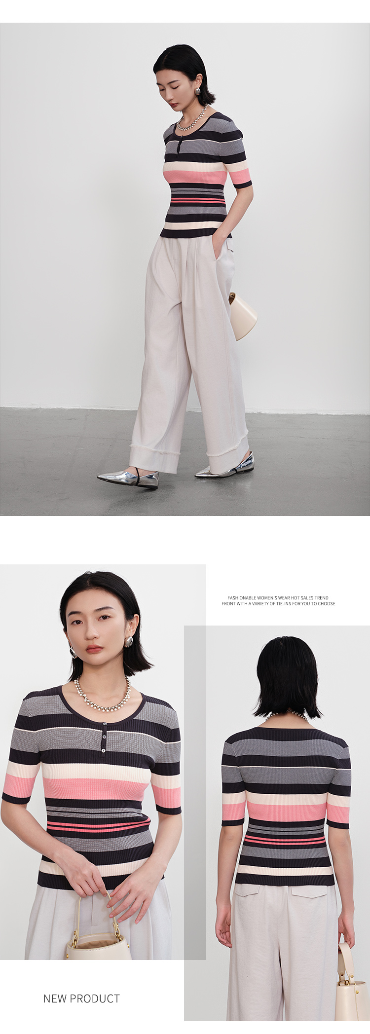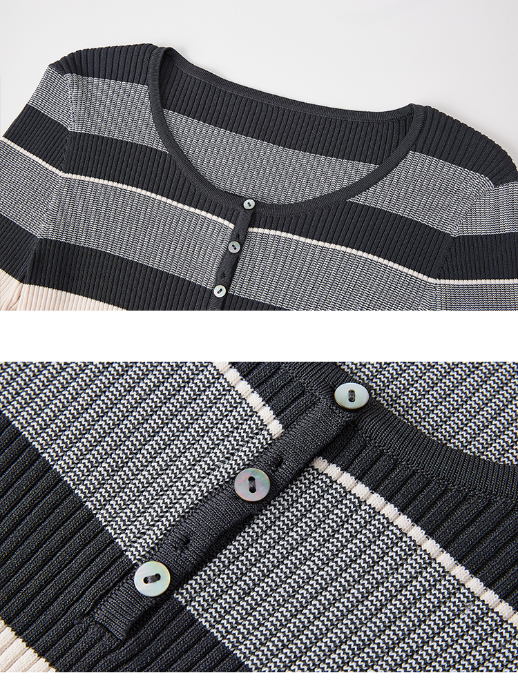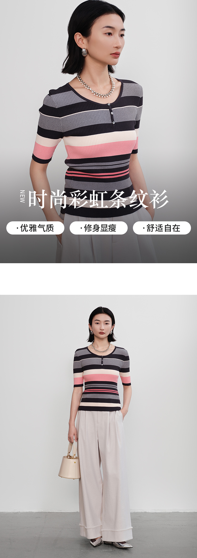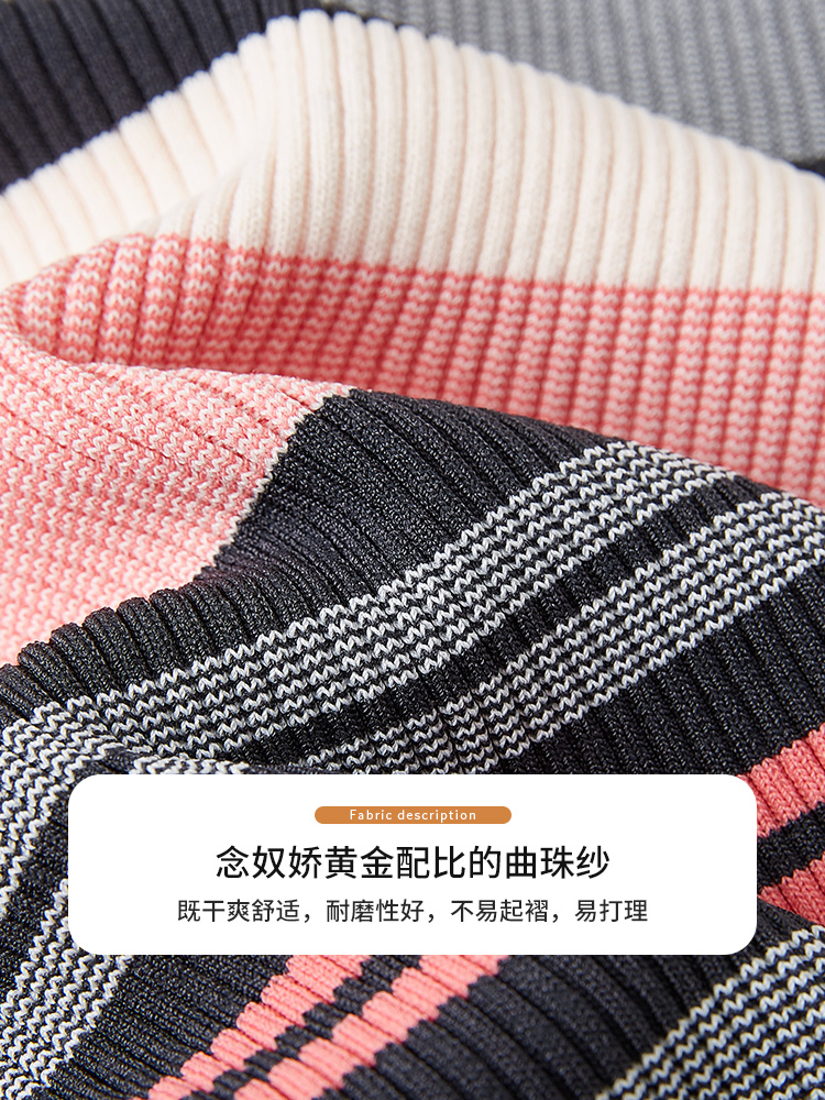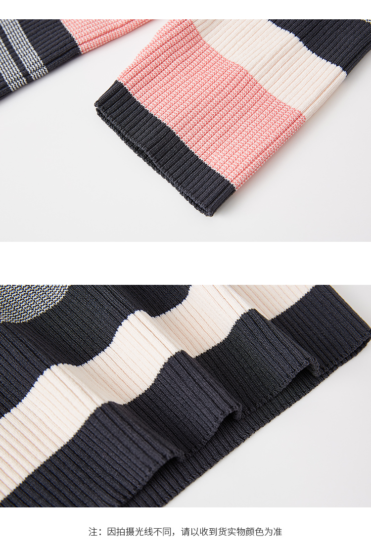 【商场同款】CNK5386 “彩虹条纹衫” 宽窄条纹修身毛衫