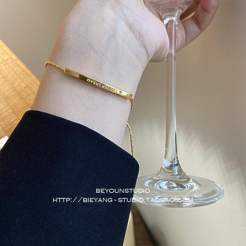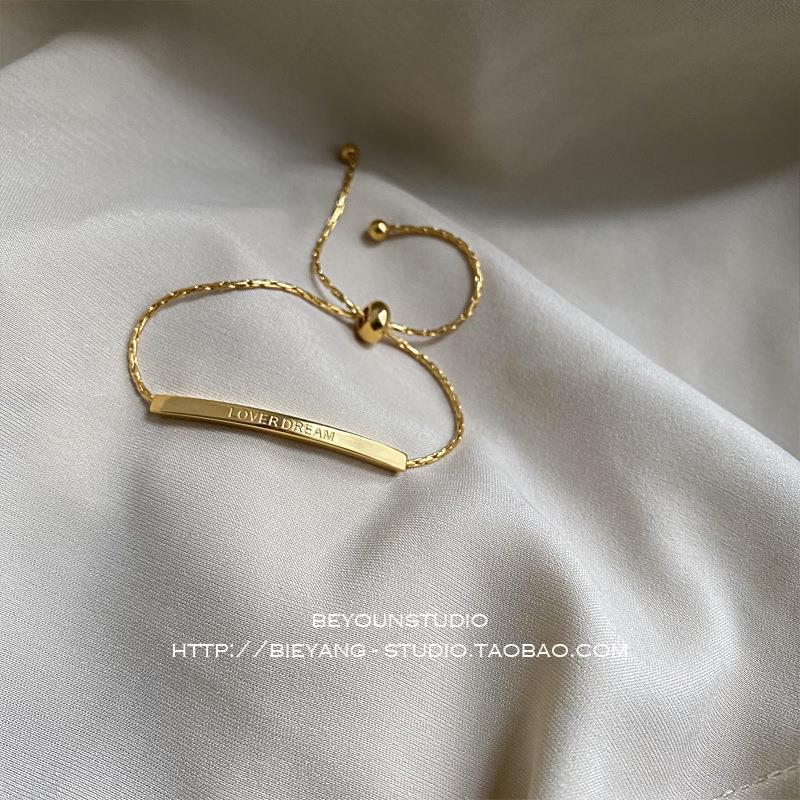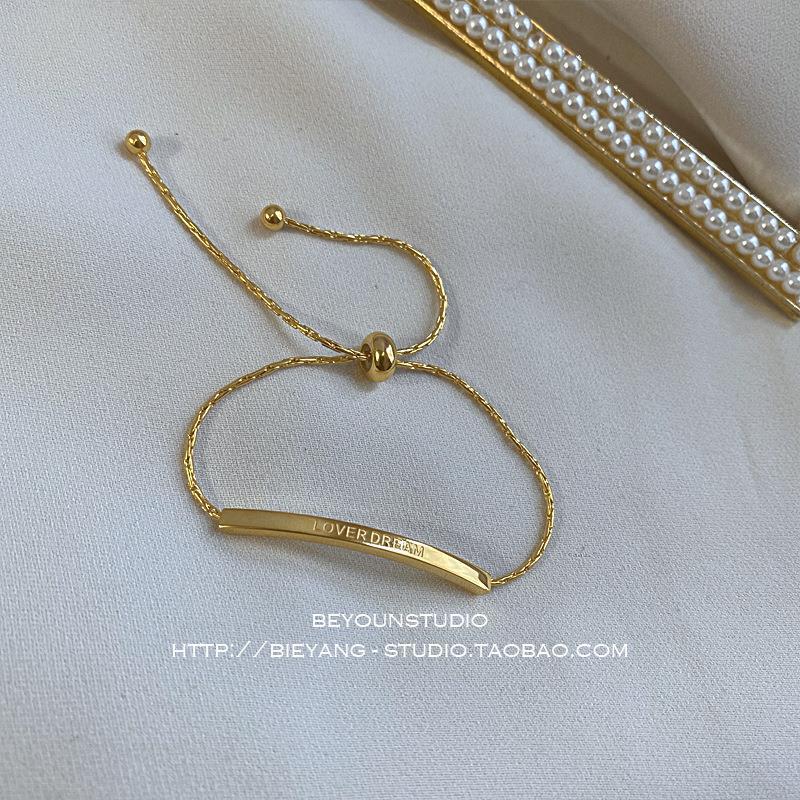 钛钢抽拉手链,独创一字字母设计,呈现现代简约气质;金色质感打造高端百搭配饰,完美诠释经典格调;潮流时尚,为你展现沉稳典雅品味。