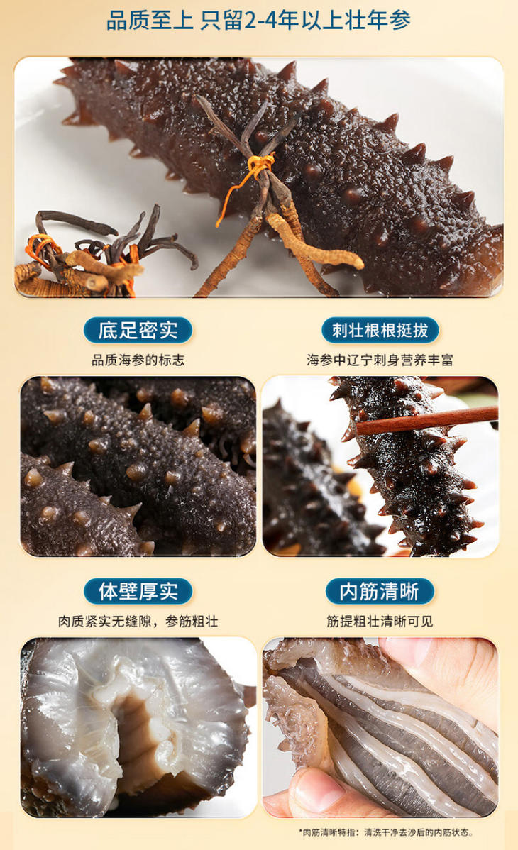 【主持人亲测严选·大连淡干海参】大连淡干海参国标一级 头茬春参 工厂直发 中式礼盒 缎面礼袋1分享2-15倍泡发 盐度≤20%(拍2发3)