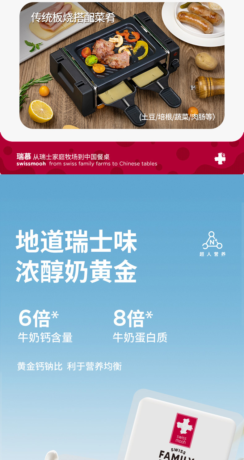 瑞慕瑞士原装进口板烧奶酪家庭聚餐烘焙香浓营养板烧芝士200g*2