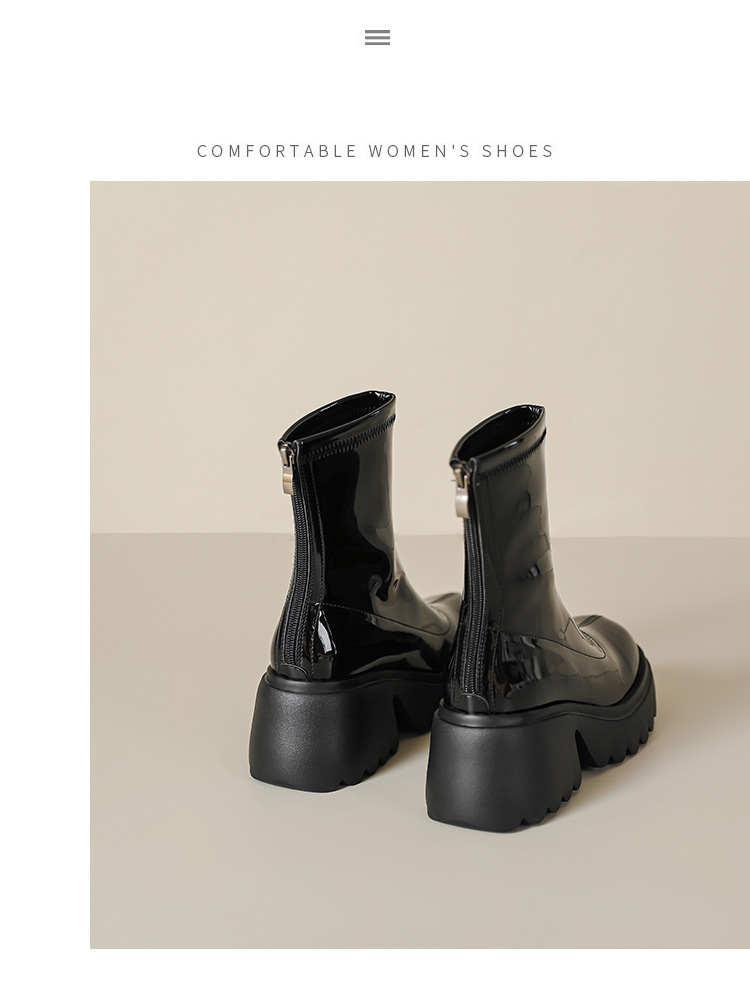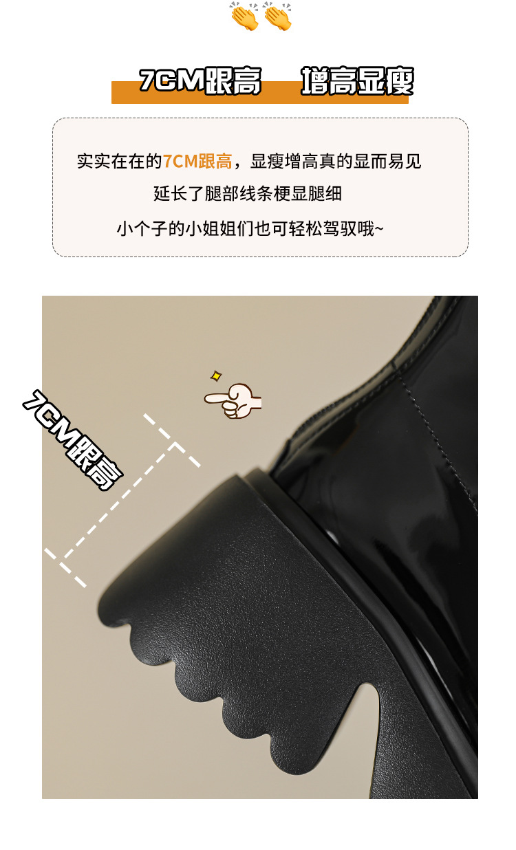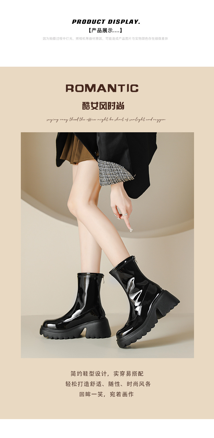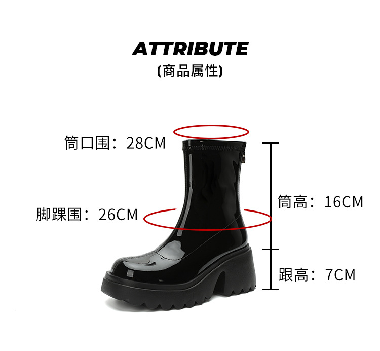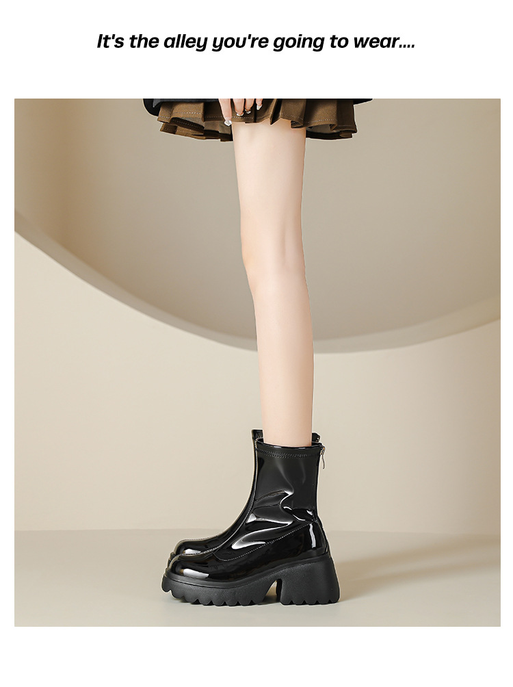 小个子女生增高厚底短靴女秋冬短筒7cm高跟漆皮粗跟瘦瘦靴防水台