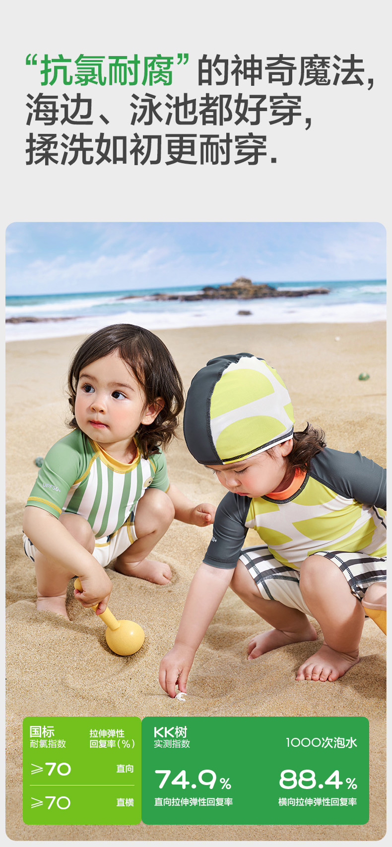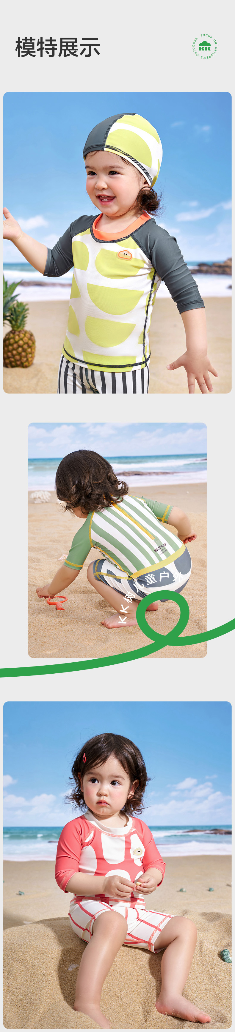 KK树儿童泳衣裤男童女孩原纱防晒耐氯游泳衣分体连体抗菌宝宝泳装抽象艺术小护盾泳衣