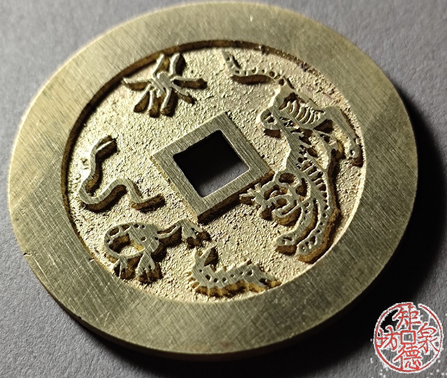 古法文创铸币 驱邪避恶背五毒图 文房铜镇 HFH02
