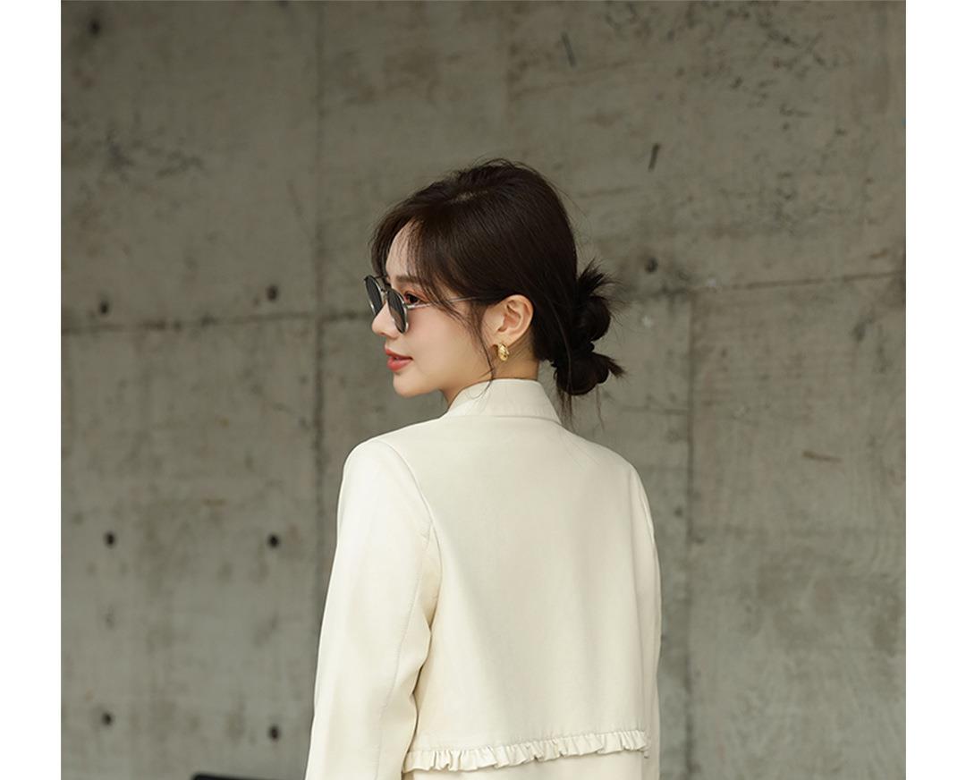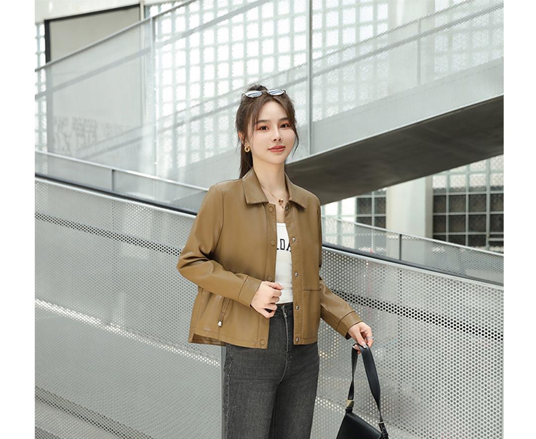 2023秋季新款韩版短款皮衣外套女翻领皮夹克宽松百搭水洗PU皮衣女