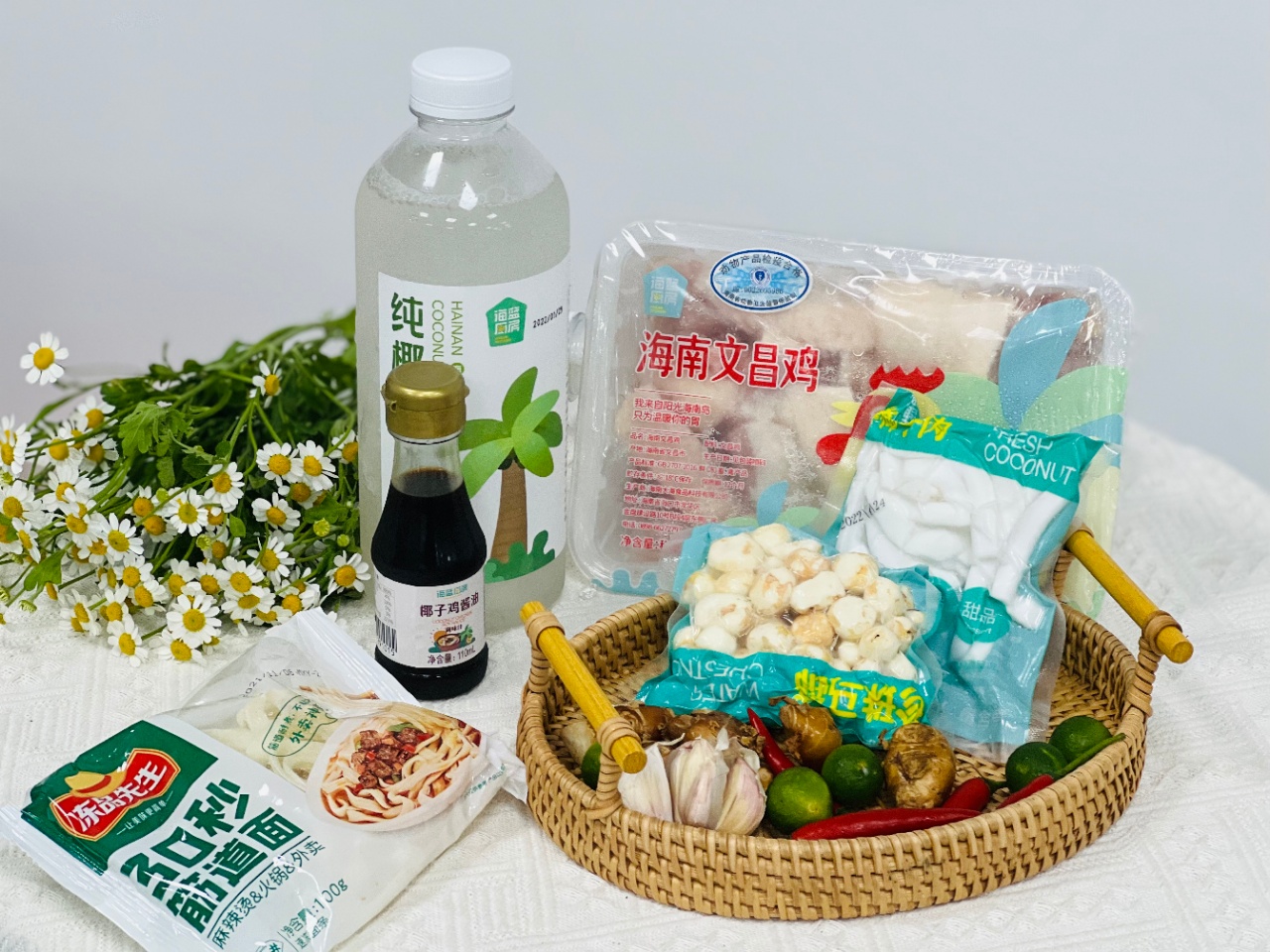 (430g文昌鸡+1000ml椰子水+椰肉100g+切好蘸料包55g+110ml酱油)+送面100克+送马蹄100g