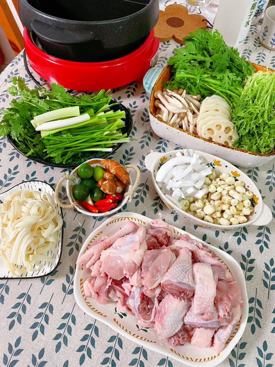 (一盒900g文昌鸡+1000ml椰子水+椰肉100g+珍珠马蹄100g+酱油110ml+切好蘸料包50g)+送筋道面100g