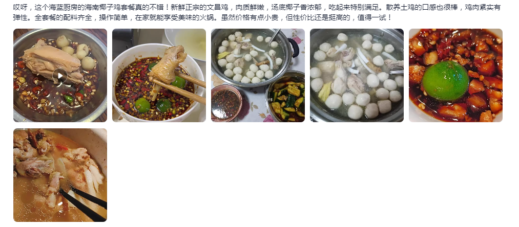 海蓝厨房椰子鸡,新鲜手工切配,味道鲜美,营养丰富,因为走地文昌鸡,肉感是实在的,椰子水也是纯纯的,让你轻松的制作一顿家宴。