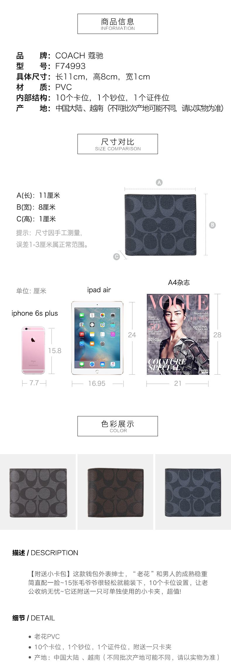 Coach 奥莱款男士PVC短款钱包