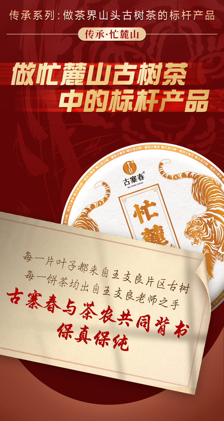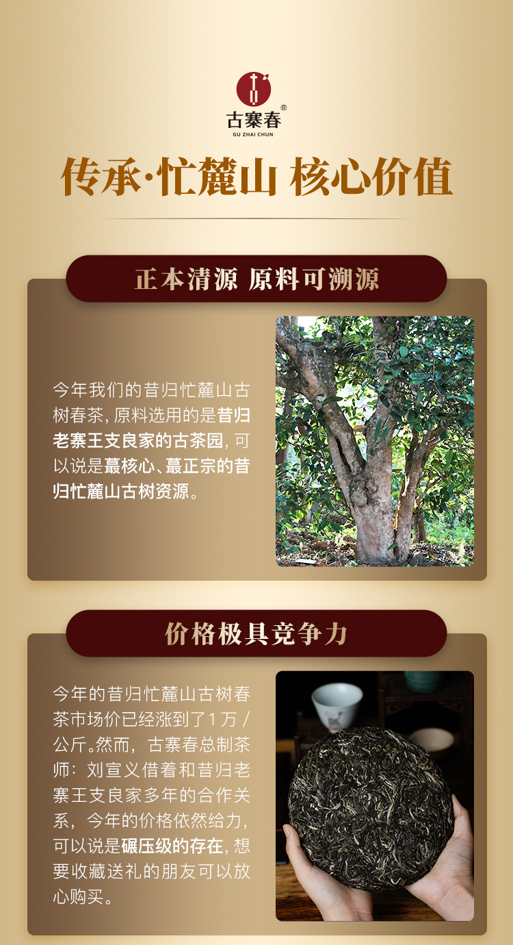 2024年春茶预售【传承忙麓山】昔归制茶非遗传承人王支良亲制普洱茶生茶357g/饼 拍5发6拍20发25