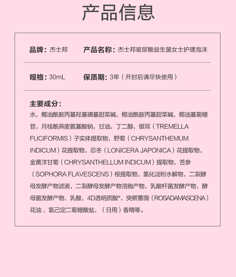 杰士邦玻尿酸益生菌女士护理泡沫30mL(JXBW30)