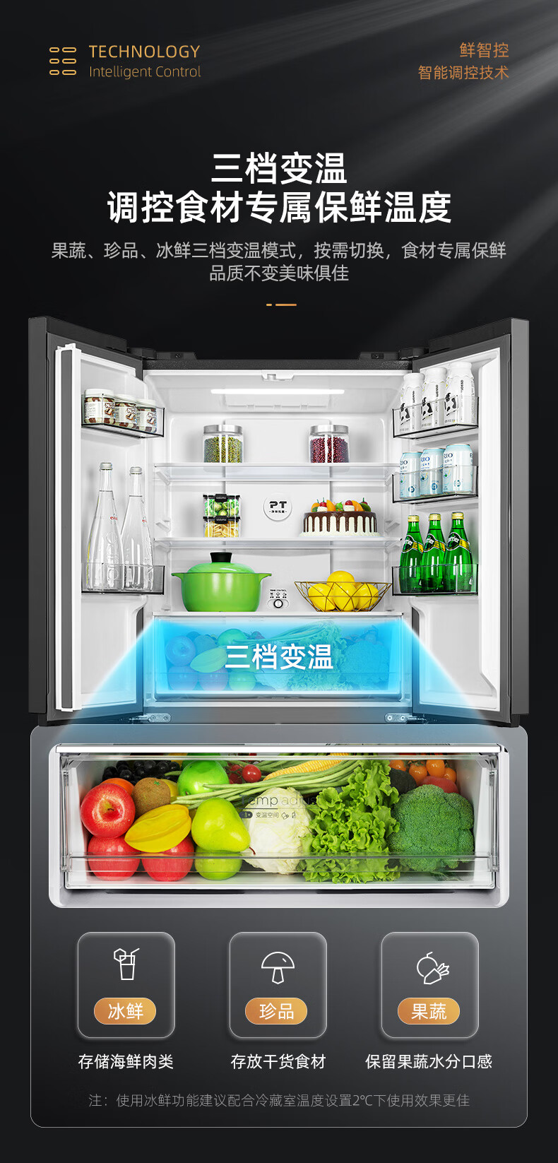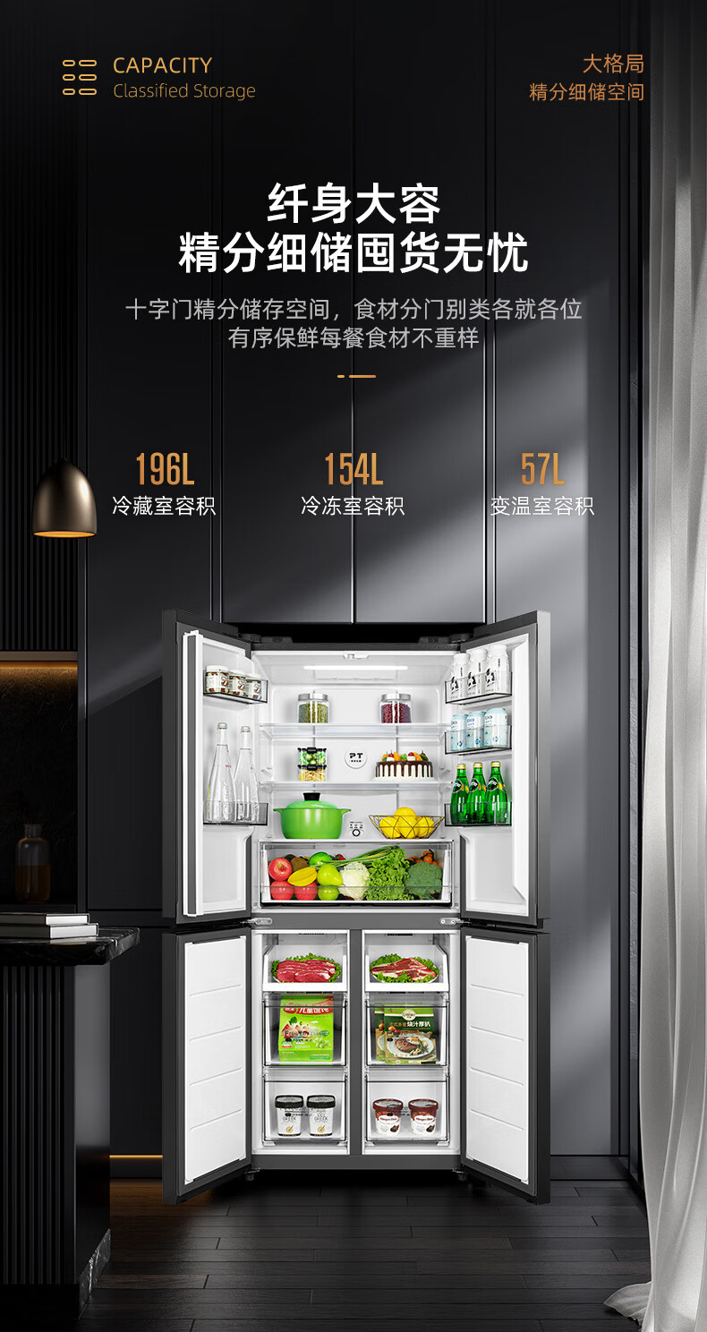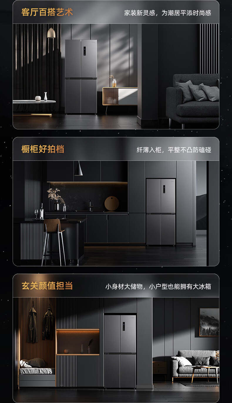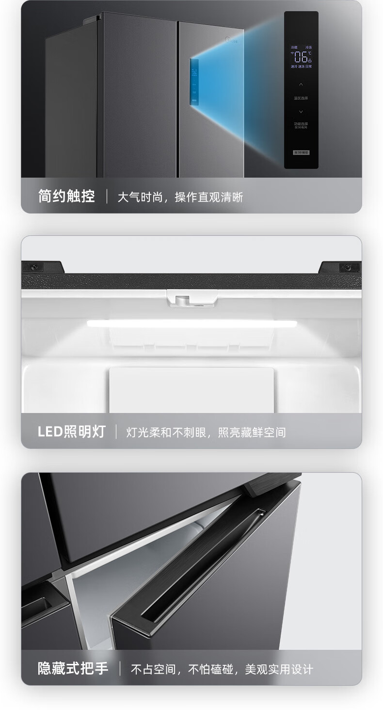 【下单前咨询地址库存】美的(Midea)61厘米薄407升一级智能双变频十字双开门对开四开门家用电冰箱大容量超薄可嵌入式 BCD-407WSPZM(E)月夜灰冰箱