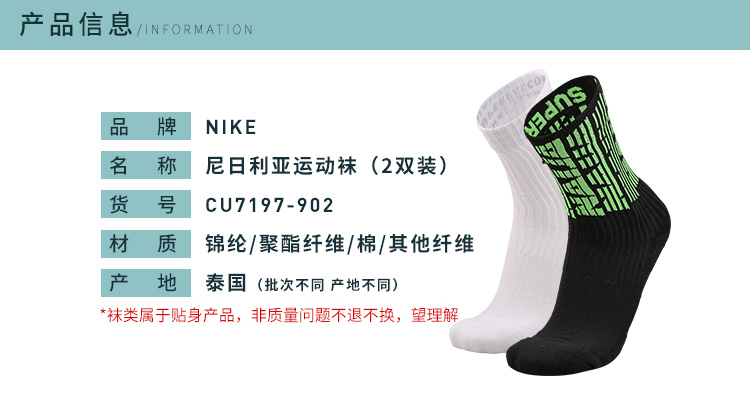 NIKE/耐克 2020尼日利亚中袜2双装CU7197-902