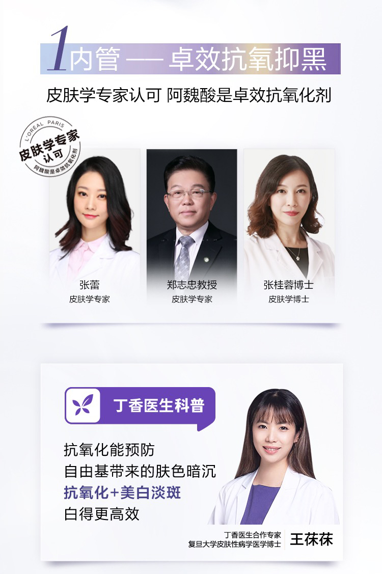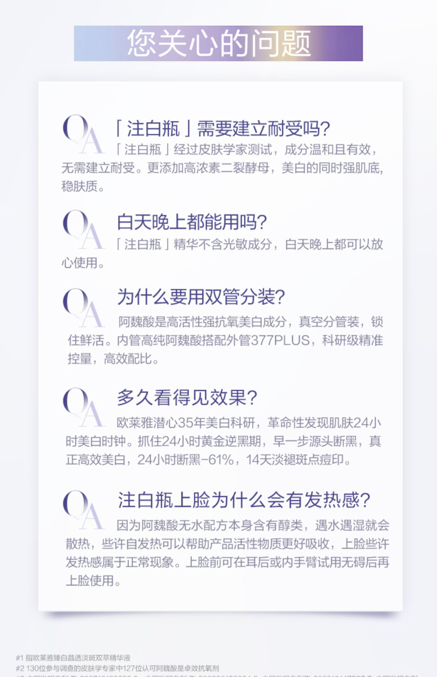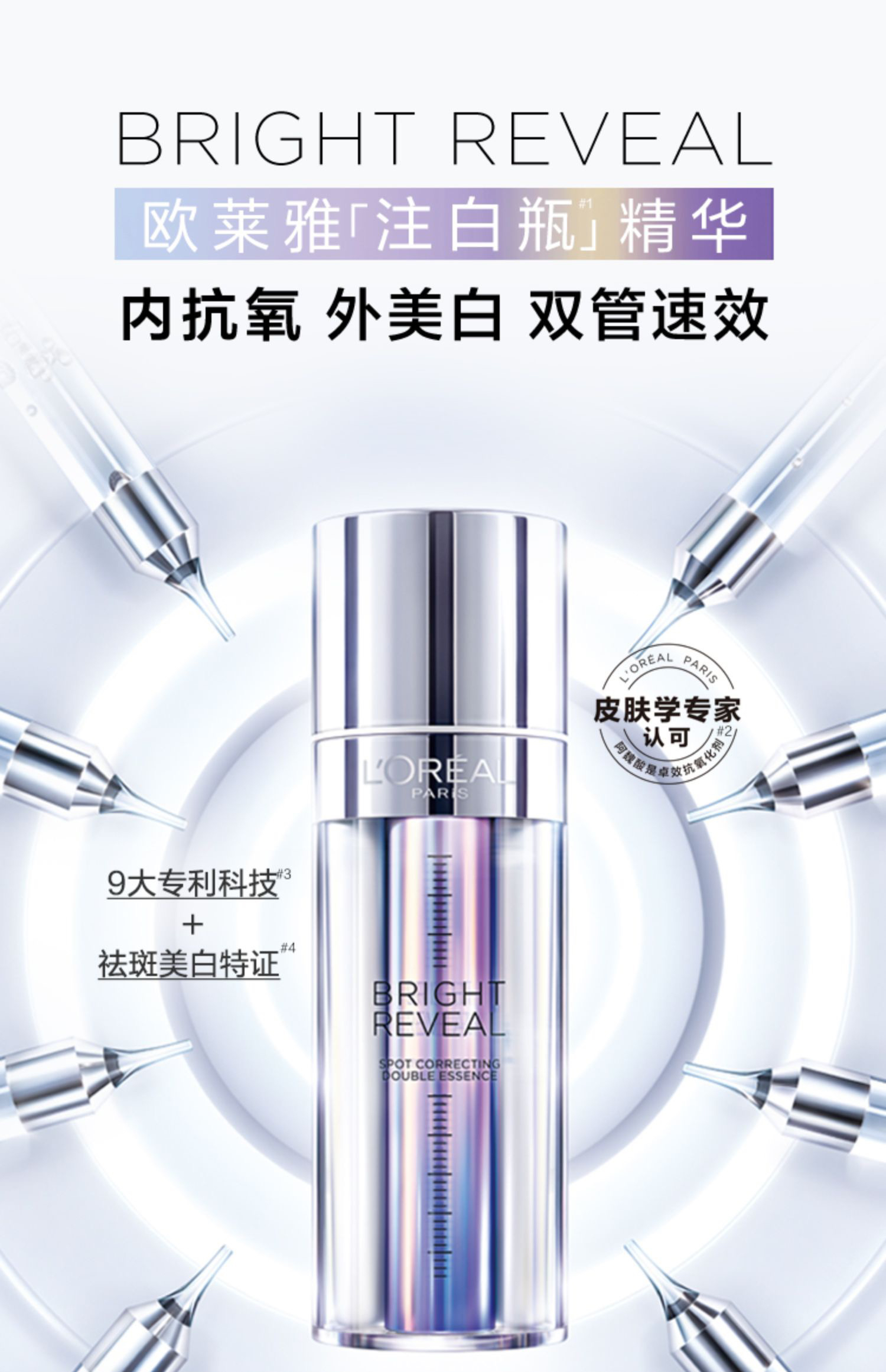 法国 L'OREAL欧莱雅 注白瓶臻白晶透美白淡斑双萃精华液 37.6ml