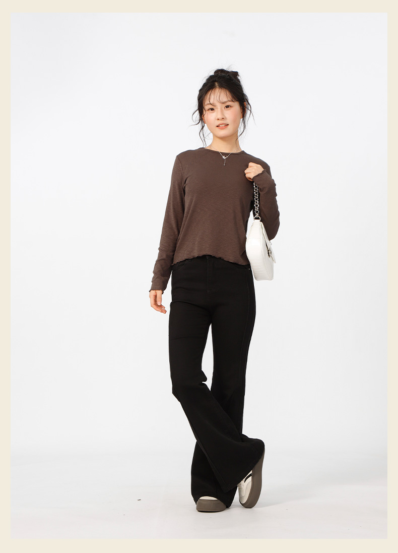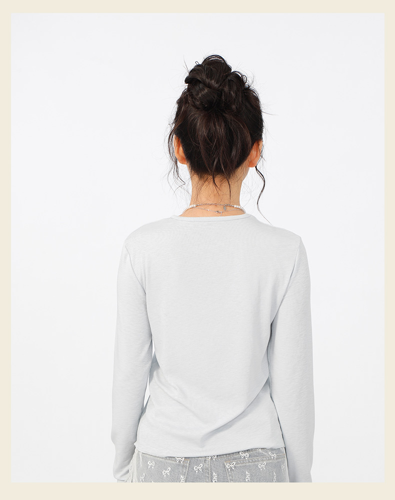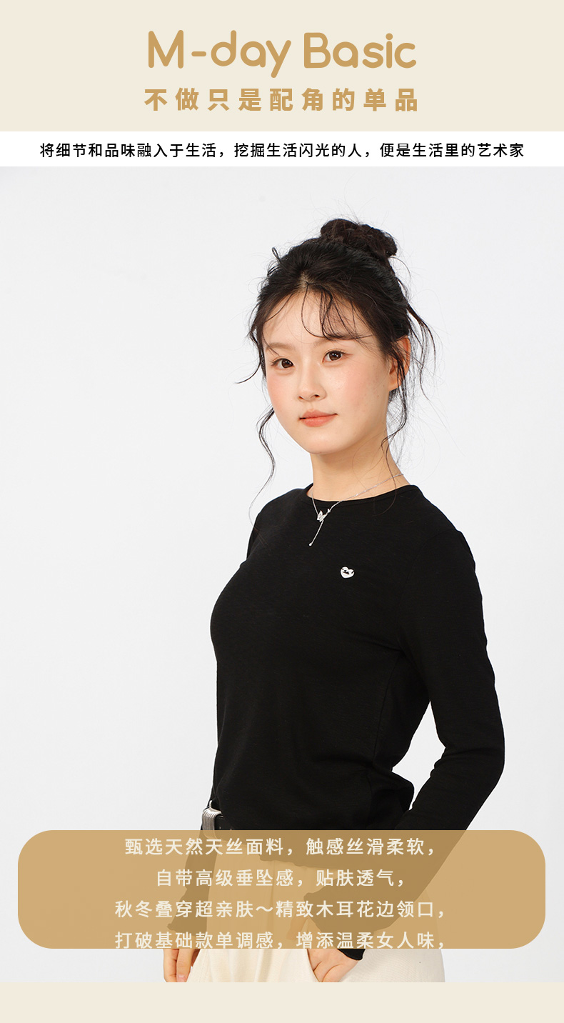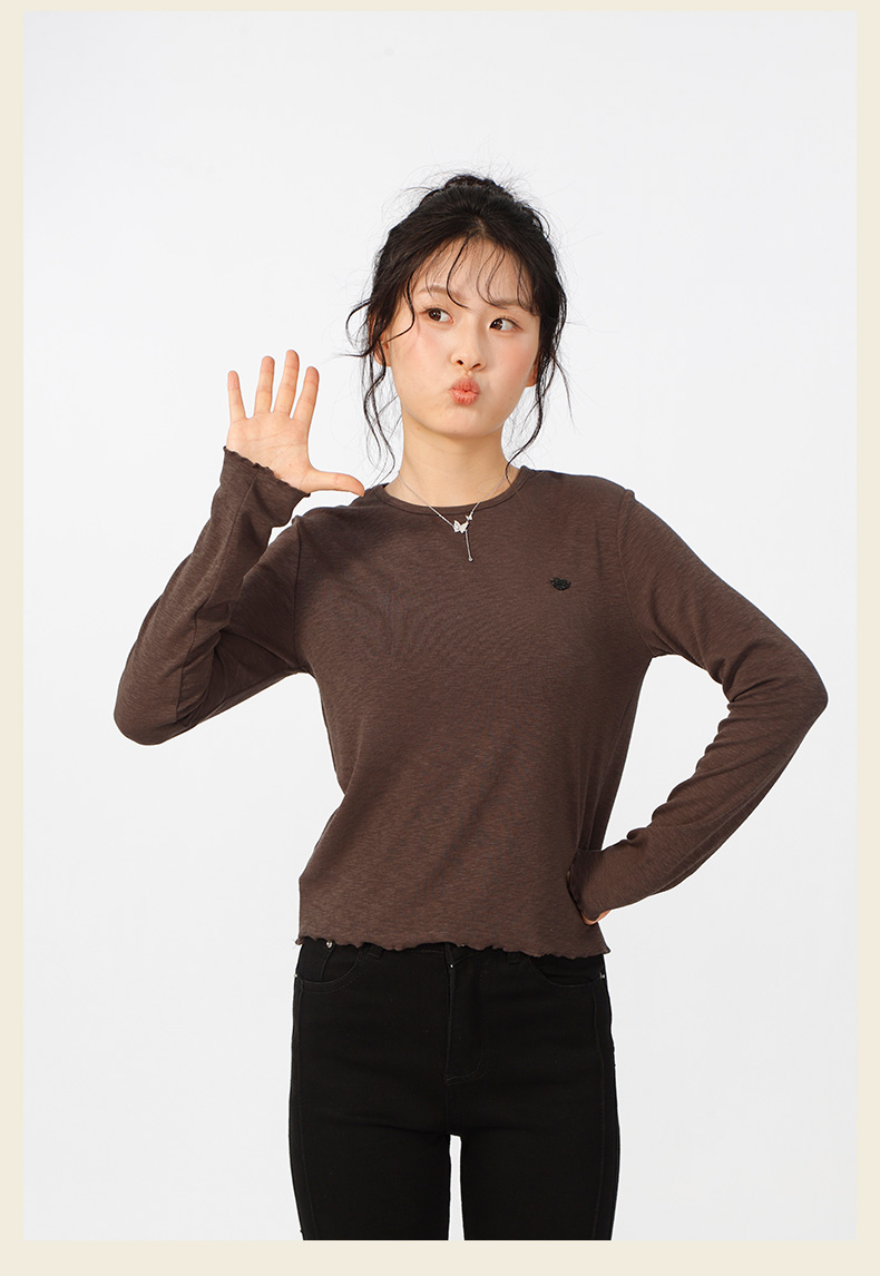 休闲气质基本款木耳边长袖T恤-纪念日百货门店同款165643320