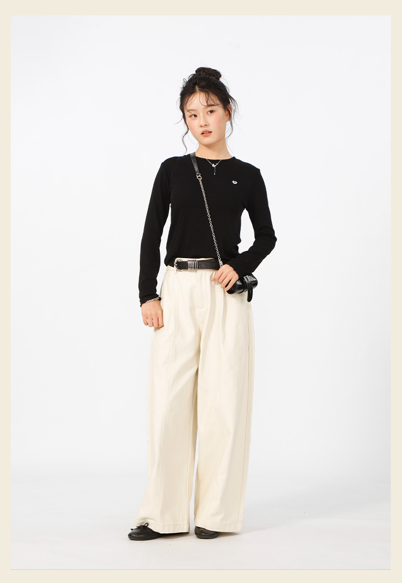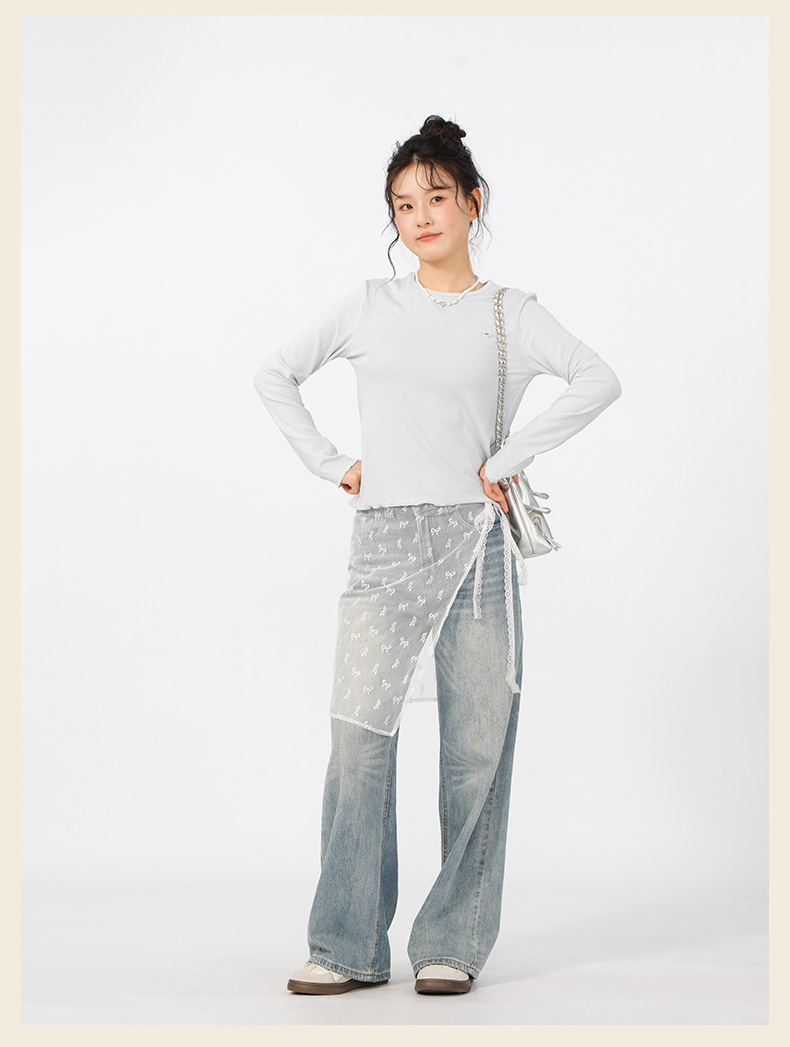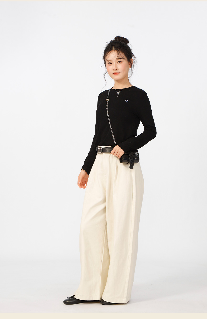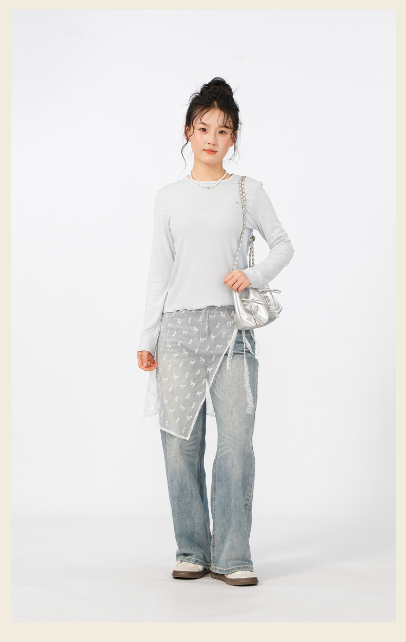 休闲气质基本款木耳边长袖T恤-纪念日百货门店同款165643320