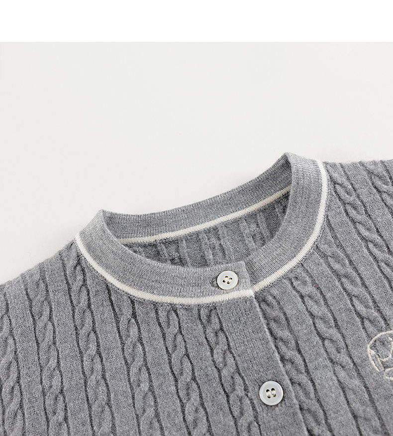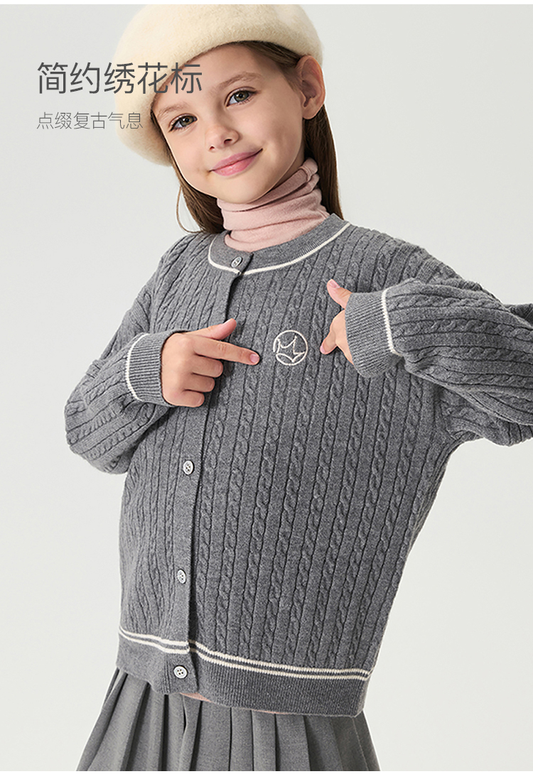 马克珍妮女童复古学院撞色针织毛衣开衫2024年秋冬新款241775