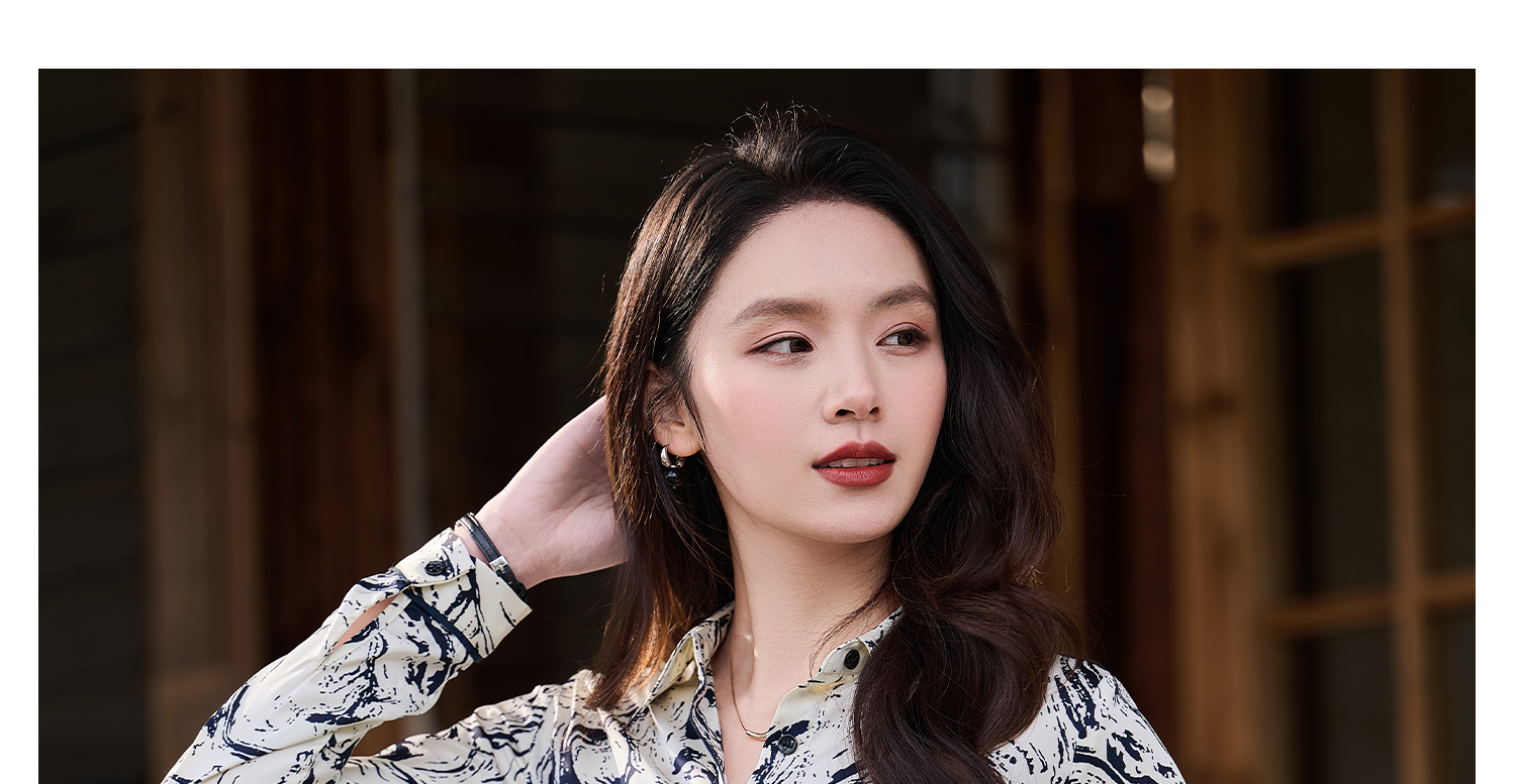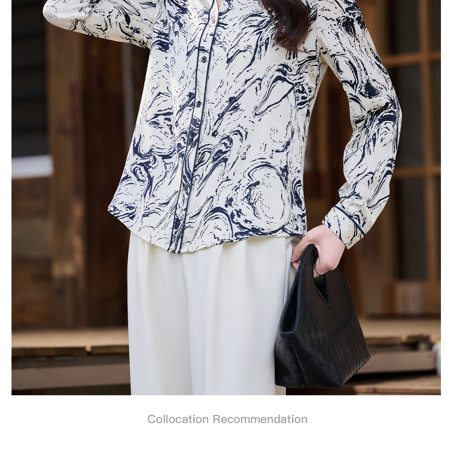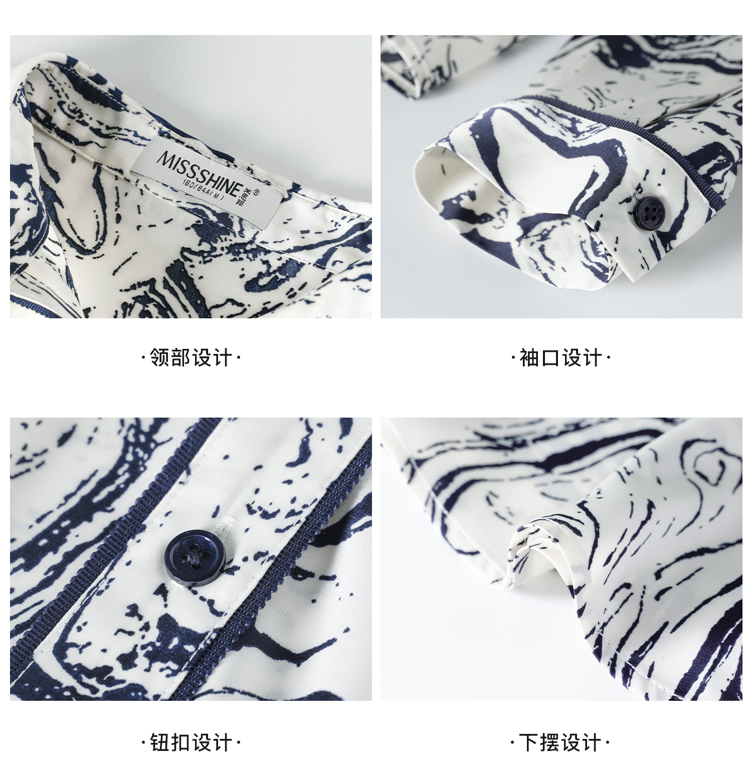 米思阳2026春季新款新中式水墨画衬衫 质地丝滑 软薄透气 女士衬衣印花通勤职业上衣长袖衬衫1716