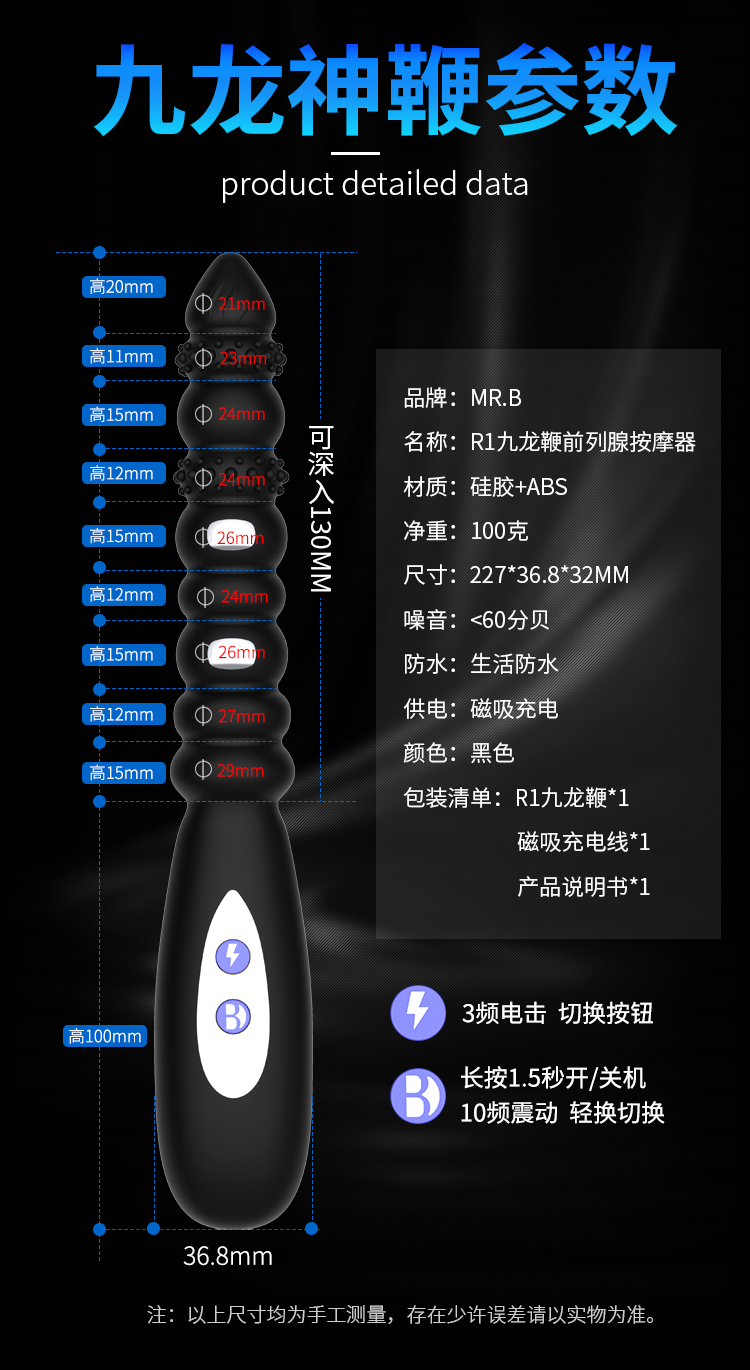 九龙鞭 电流刺激多频震动后庭按摩器