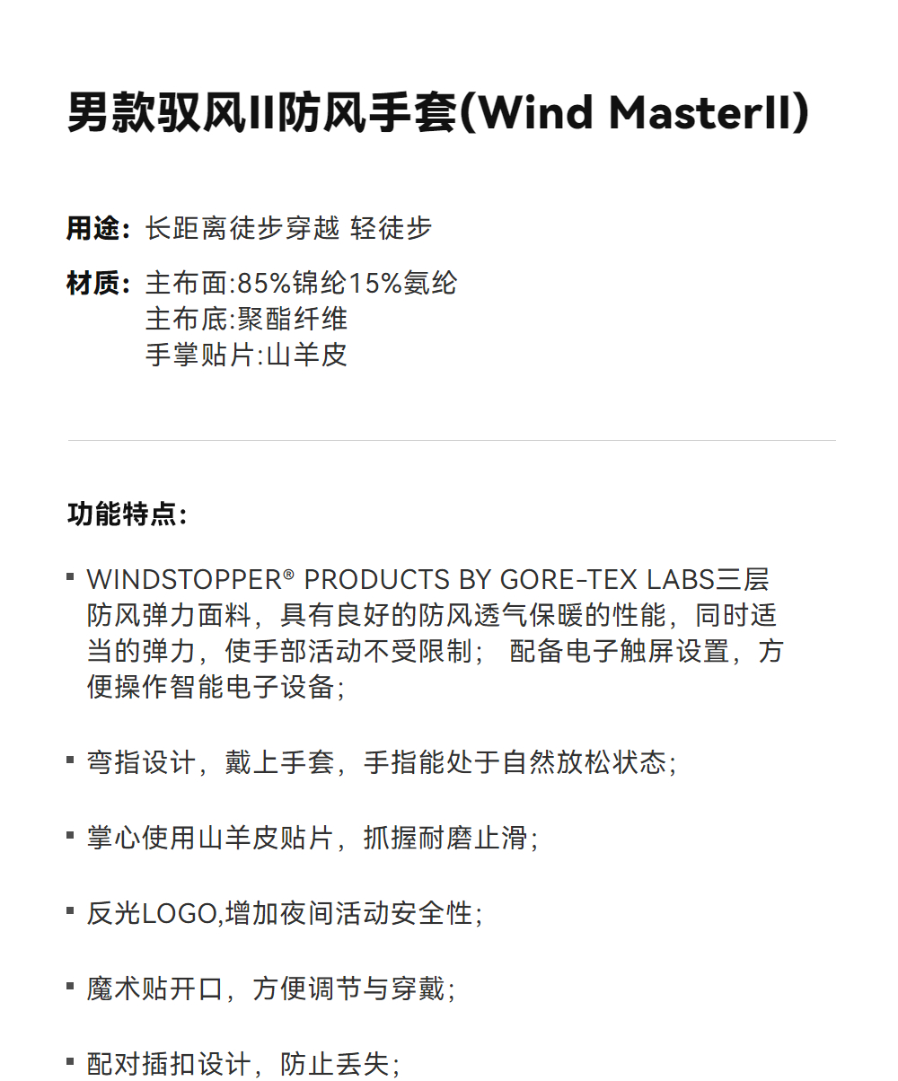 KAILAS凯乐石 男款驭风Ⅱ防风手套(Wind MasterⅡ) KM2404101