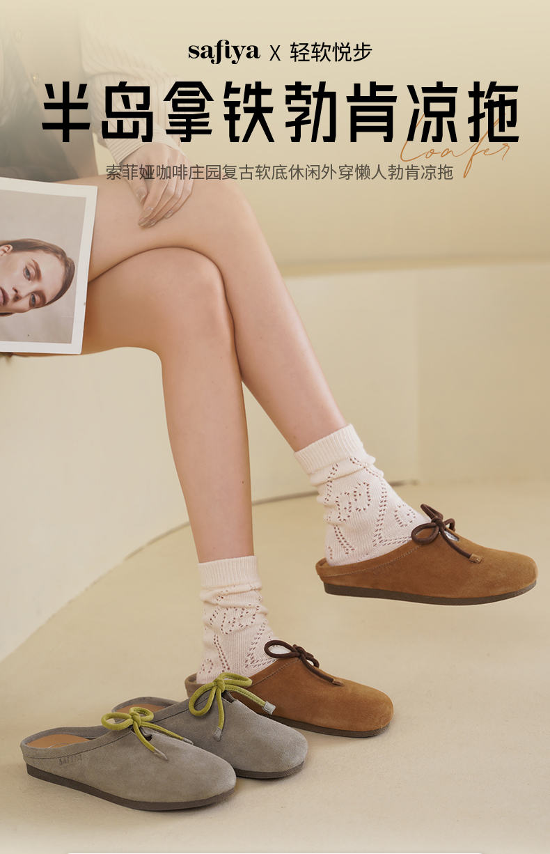 预售10天发|Safiya/索菲娅2025咖啡庄园复古软底休闲外穿懒人勃肯凉拖 SFD1110401