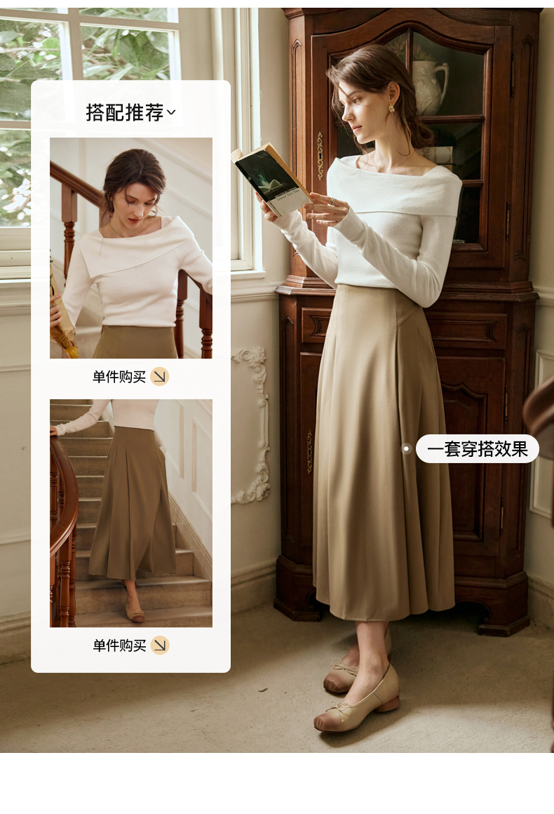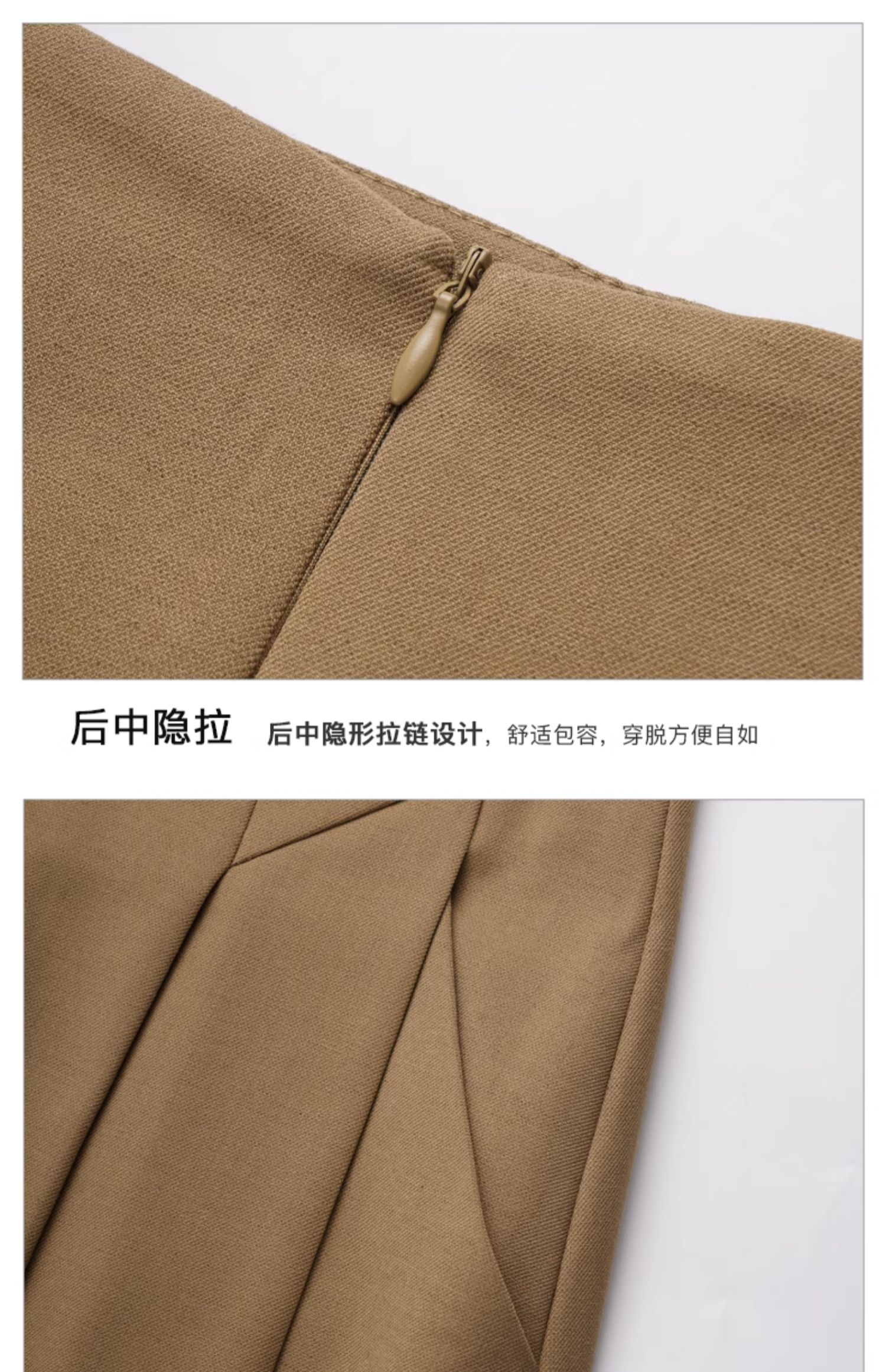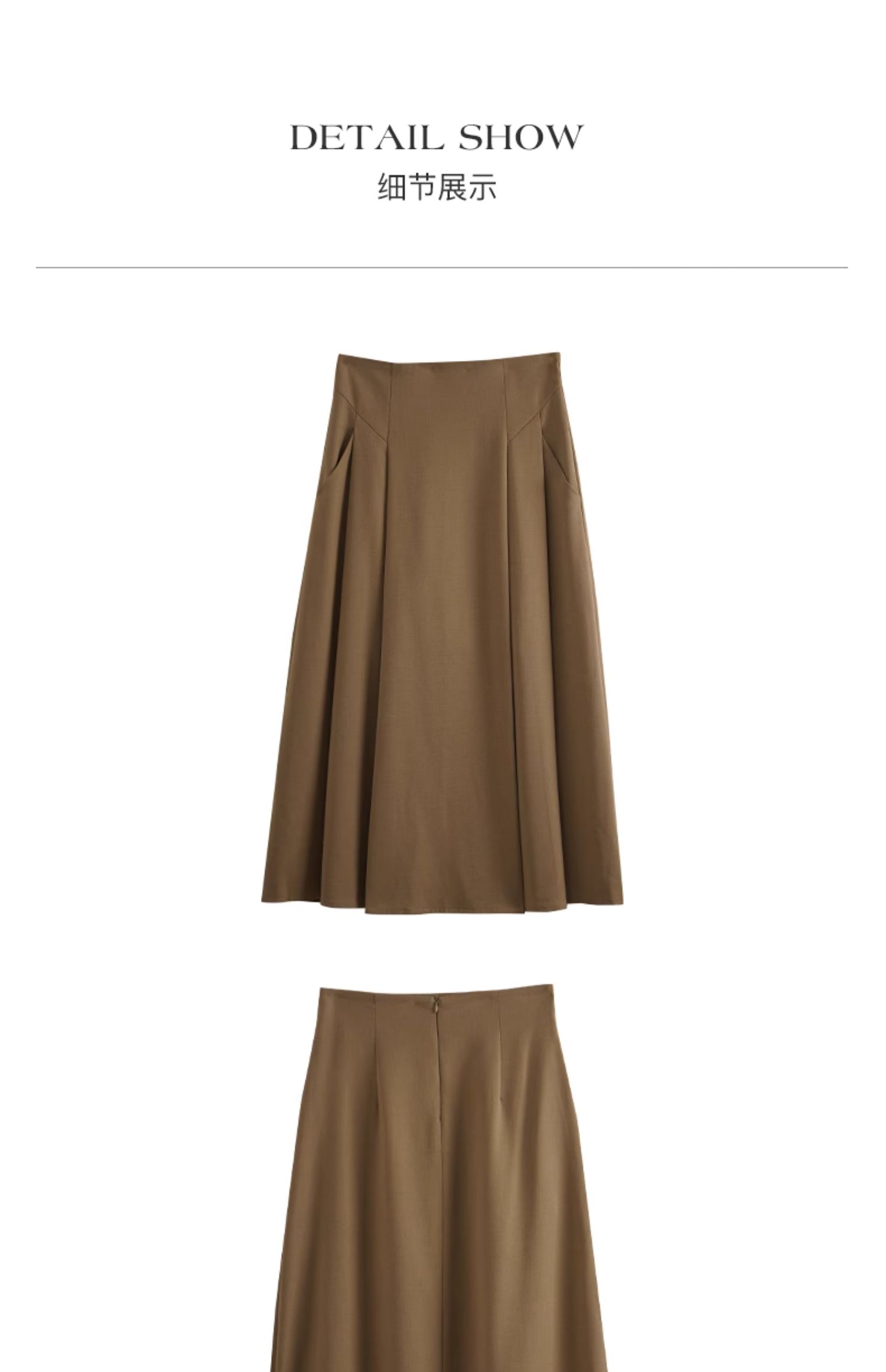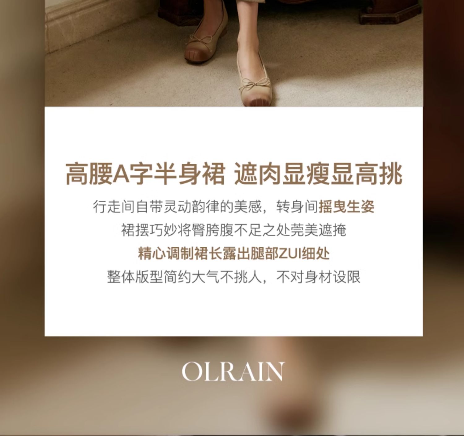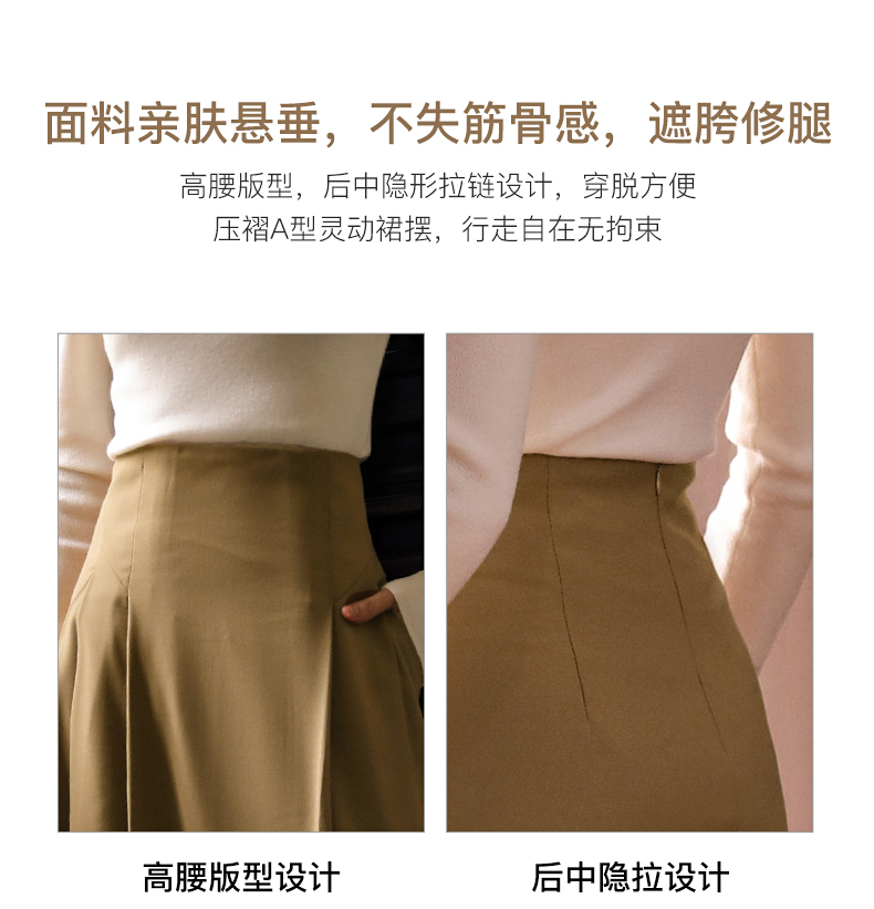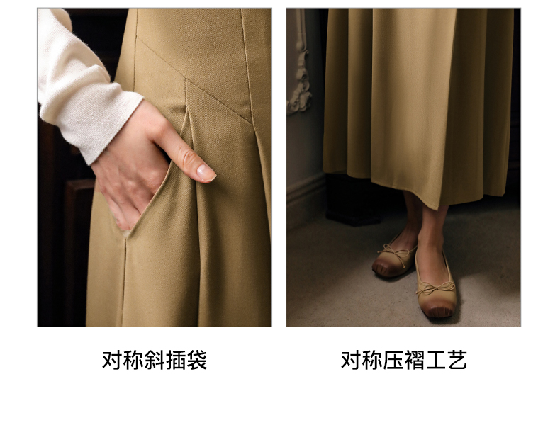 OLrain欧芮儿卡其色半身裙女春季2024年新款气质优雅通勤马面裙