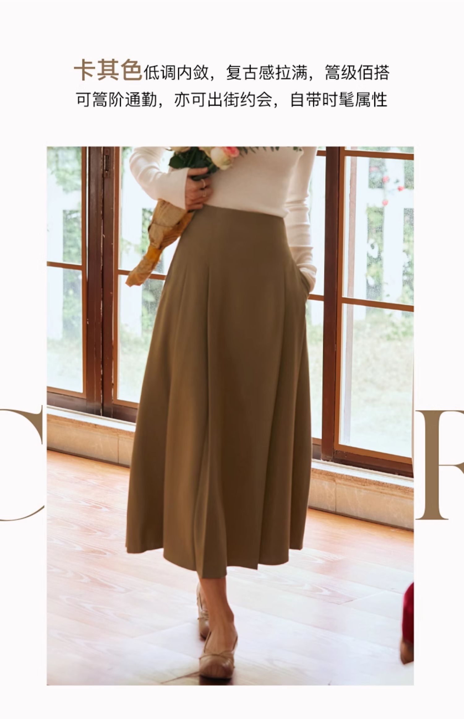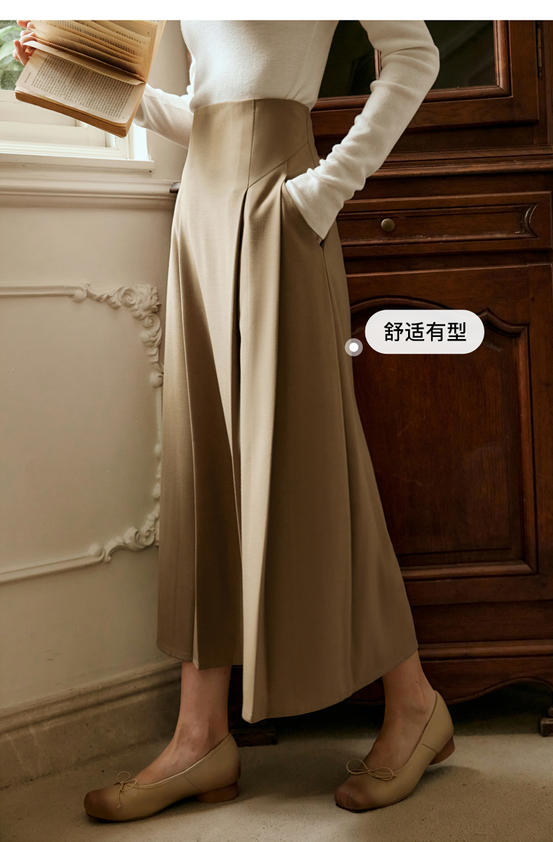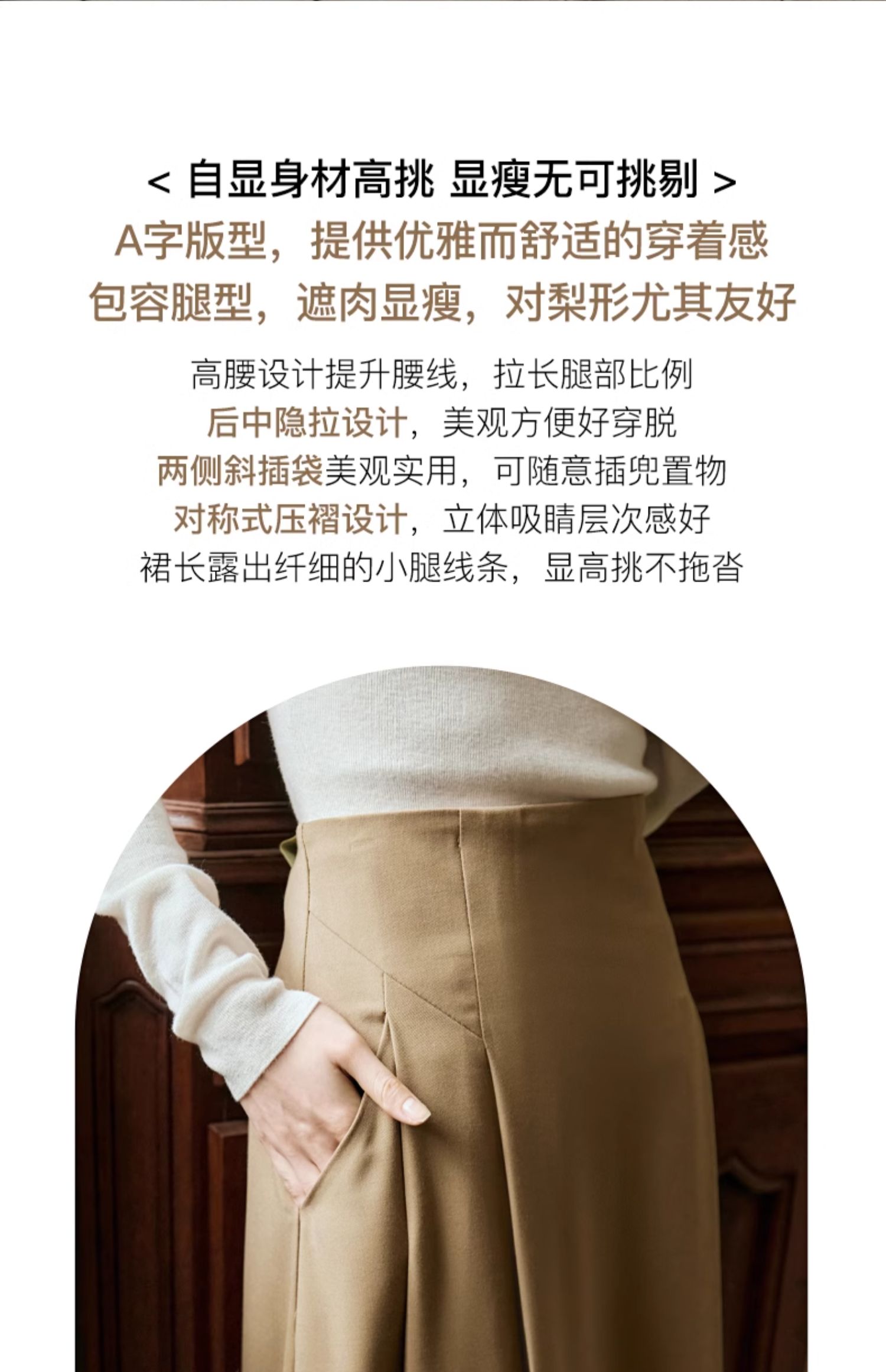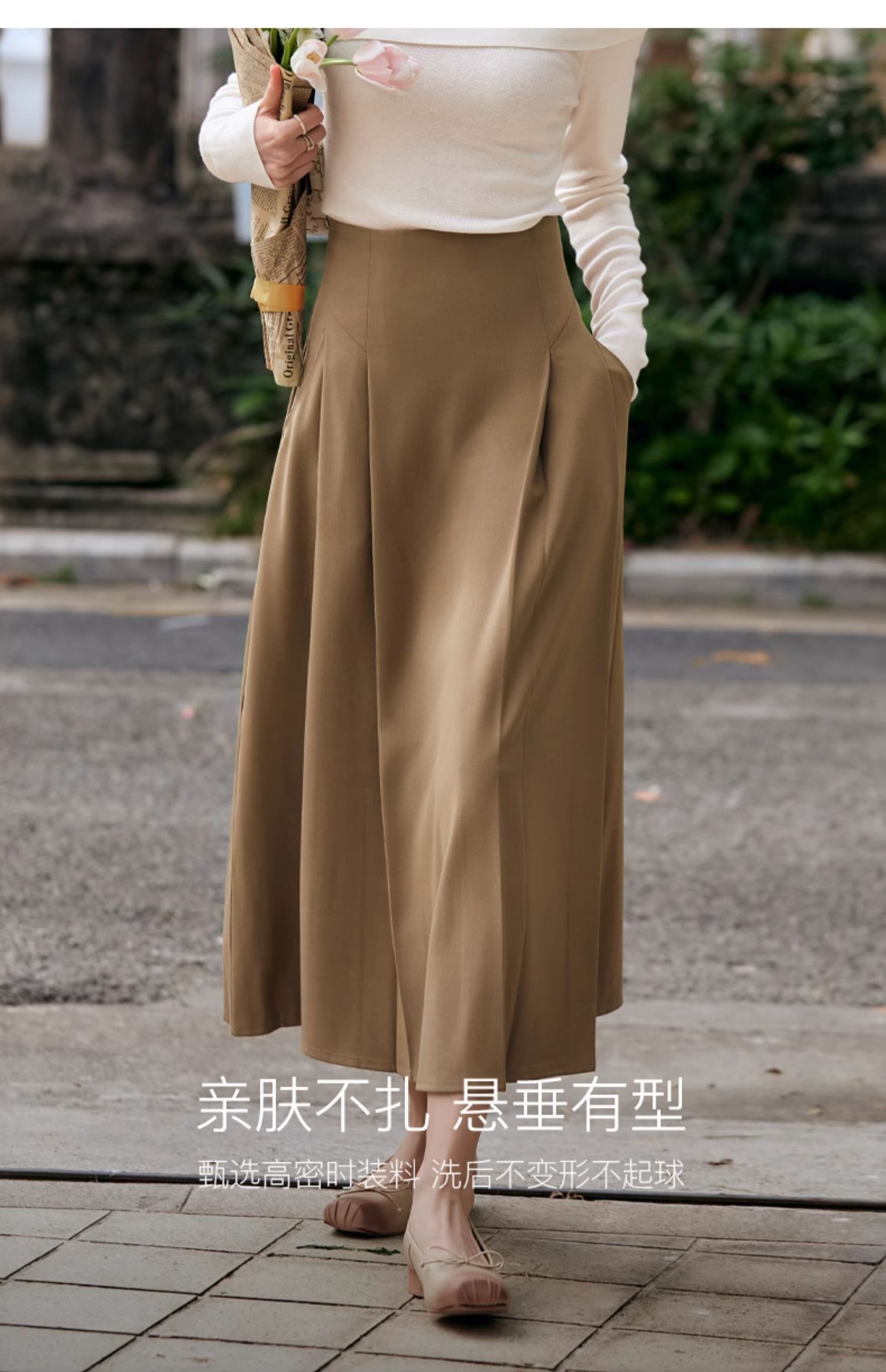 OLrain欧芮儿卡其色半身裙女春季2024年新款气质优雅通勤马面裙